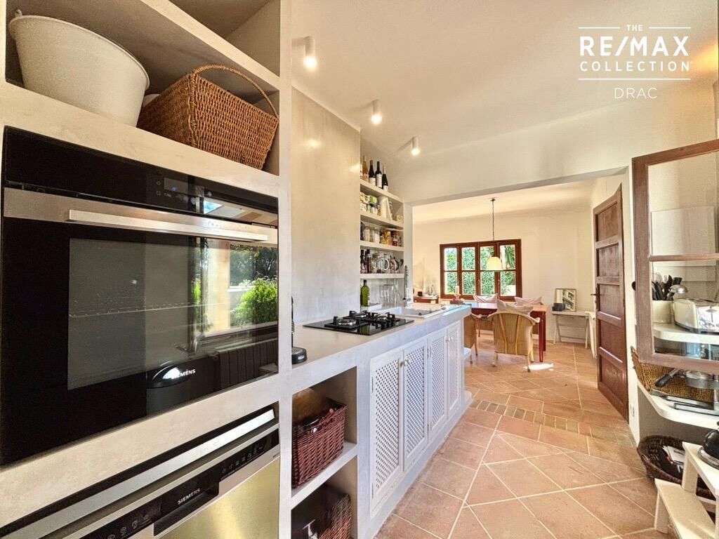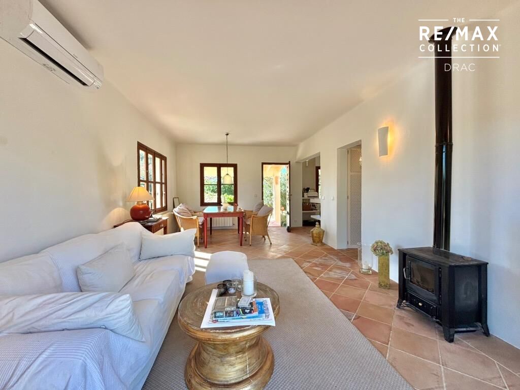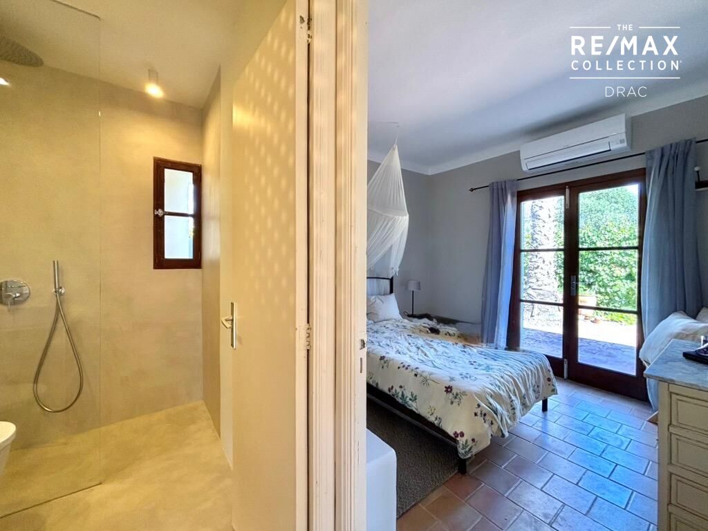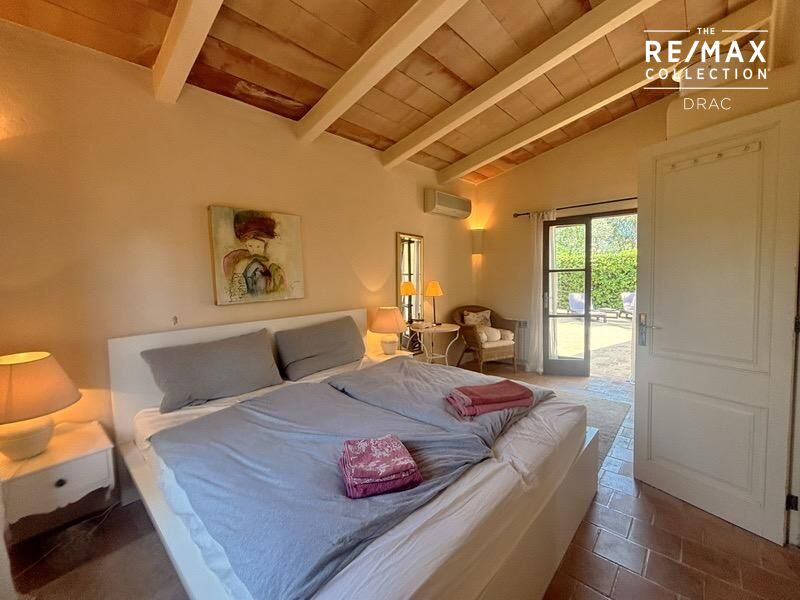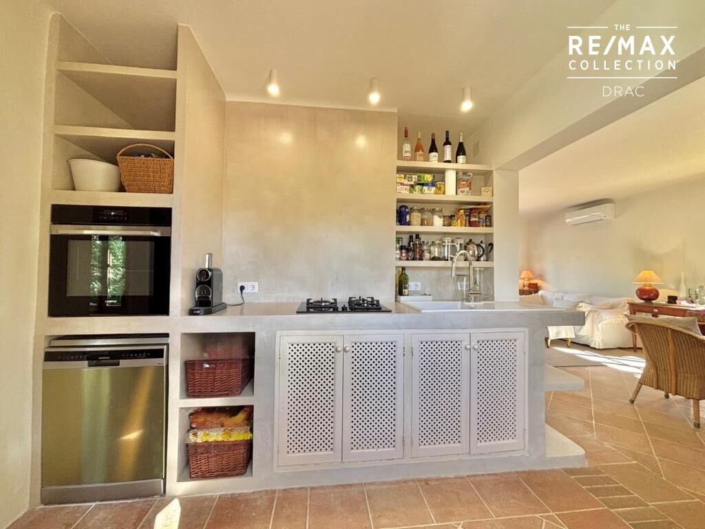 A l’interior, la casa compta amb un lluminós saló-menjador amb llar de foc de llenya i aire condicionat (fred-calor). La lluminosa cuina americana ha estat recentment reformada i inclou frigorífic, placa de gas, forn i rentavaixelles. El bany amb dutxa també ha estat recentment reformat. Hi ha dos dormitoris, un amb un ampli armari encastat.