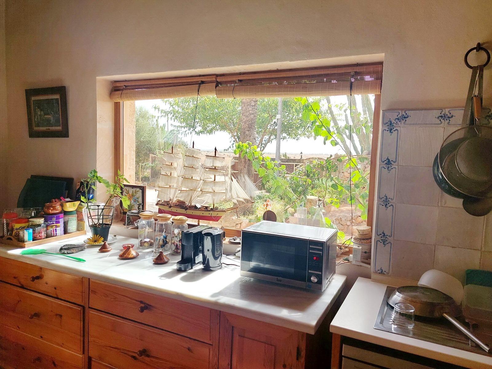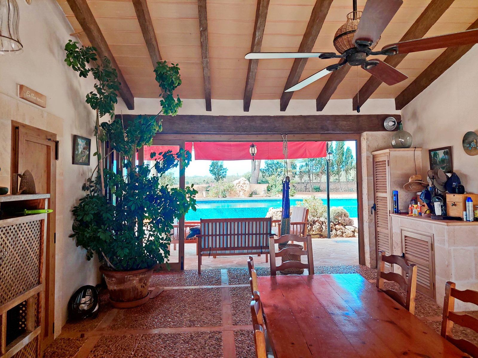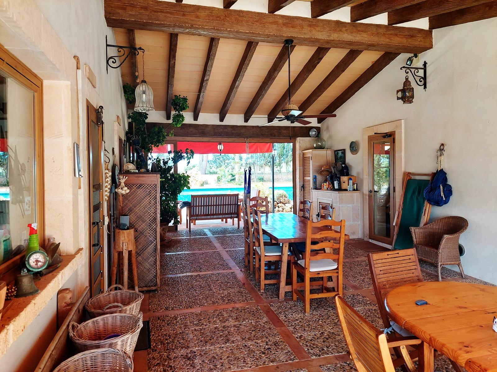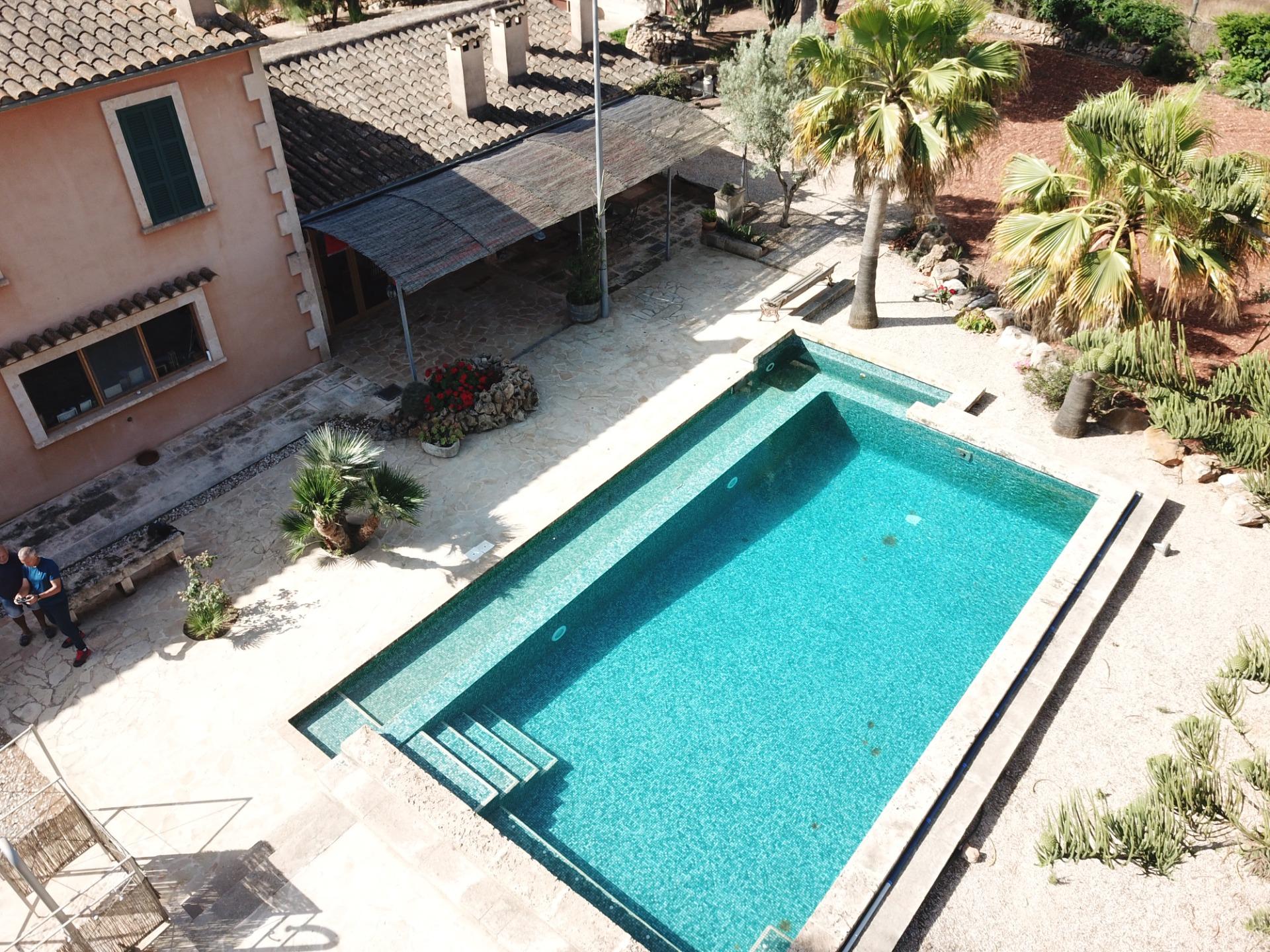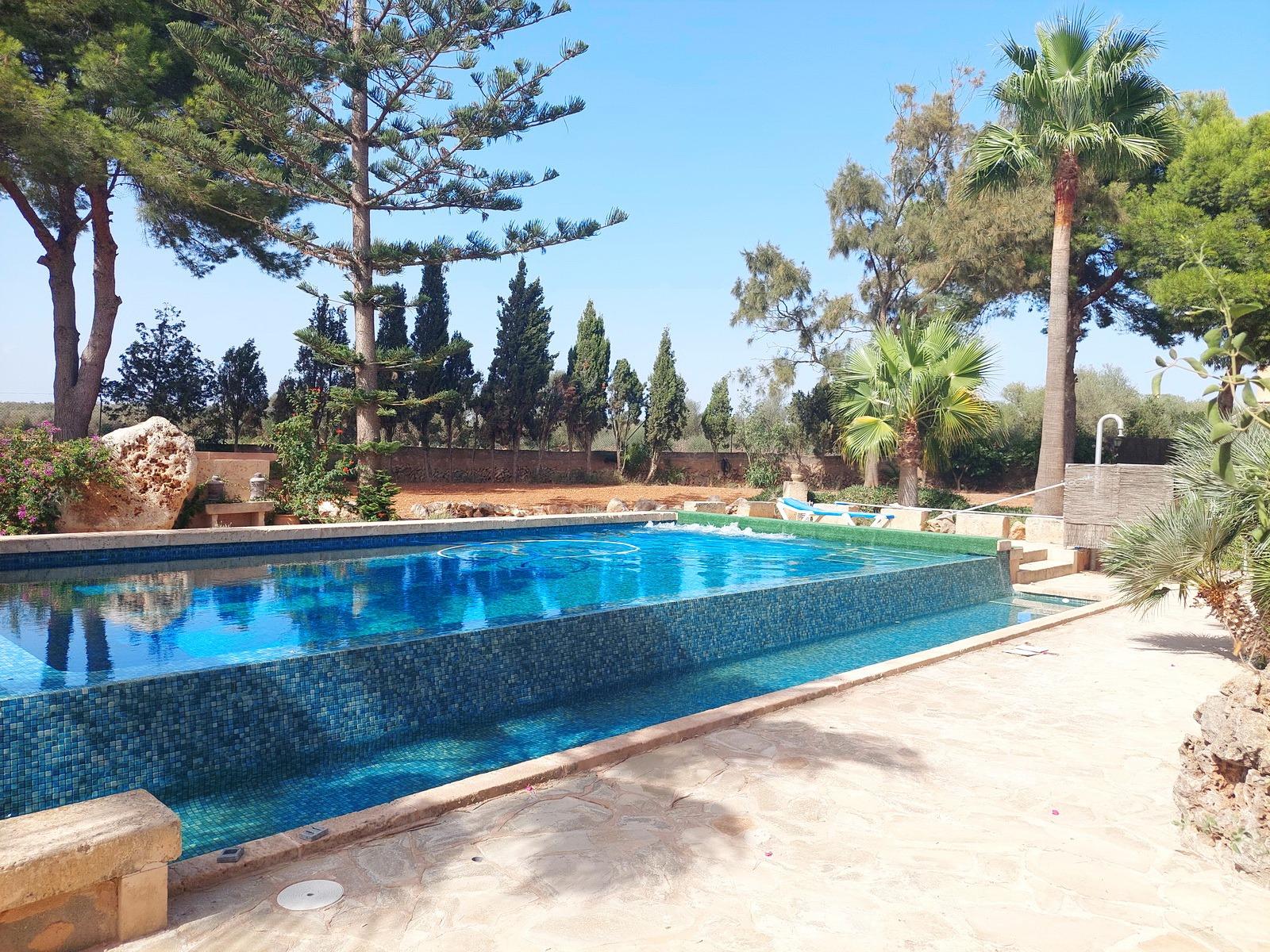 Aquesta gran finca rústica de 86.000 m2 de terreny, es troba a pocs quilòmetres de la platja des Trenc, en un emplaçament rural molt tranquil, però no gaire lluny de zones urbanes com sa Ràpida o Camps i a mitja hora de l’aeroport. La finca té moltes possibilitats, a més d’un gran habitatge d’uns 600 m2 amb piscina , amb un gran garatge i un magatzem agrícola, compta amb tres naus industrials de grans proporcions, on abans es guardaven vaixells i que es podrien destinar a altres funcions, a més de la piscina compta amb un “safareig” que és un estany d’aigua emmagatzemada per al regadiu.L’habitatge és ideal per a una gran família, té unes àmplies zones comunes com una gran sala menjador que es comunica amb la piscina i que pot estar oberta a l’estiu i vidrada a l’hivern, una gran cuina amb totes les comoditats, incloent-hi un gran forn . un despatx i una gran sala d’estar, tot molt lluminós i enlairat. a la primera planta hi ha un gran dormitori doble amb vestidor , bany i una terrassa des d’on es pot veure el mar i l’illa de Cabrera. a la planta baixa es troben les altres habitacions i banys.La casa disposa de calefacció central, en algunes parts radiadores, i en altres sòl radiant, la piscina té un Jakuzy i també un generador d’onades. La finca està connectada a la xarxa elèctrica i a l’ aigua corrent i a més té dos pous d’ aigua subterranis i una gran extensió de terra de conreu.