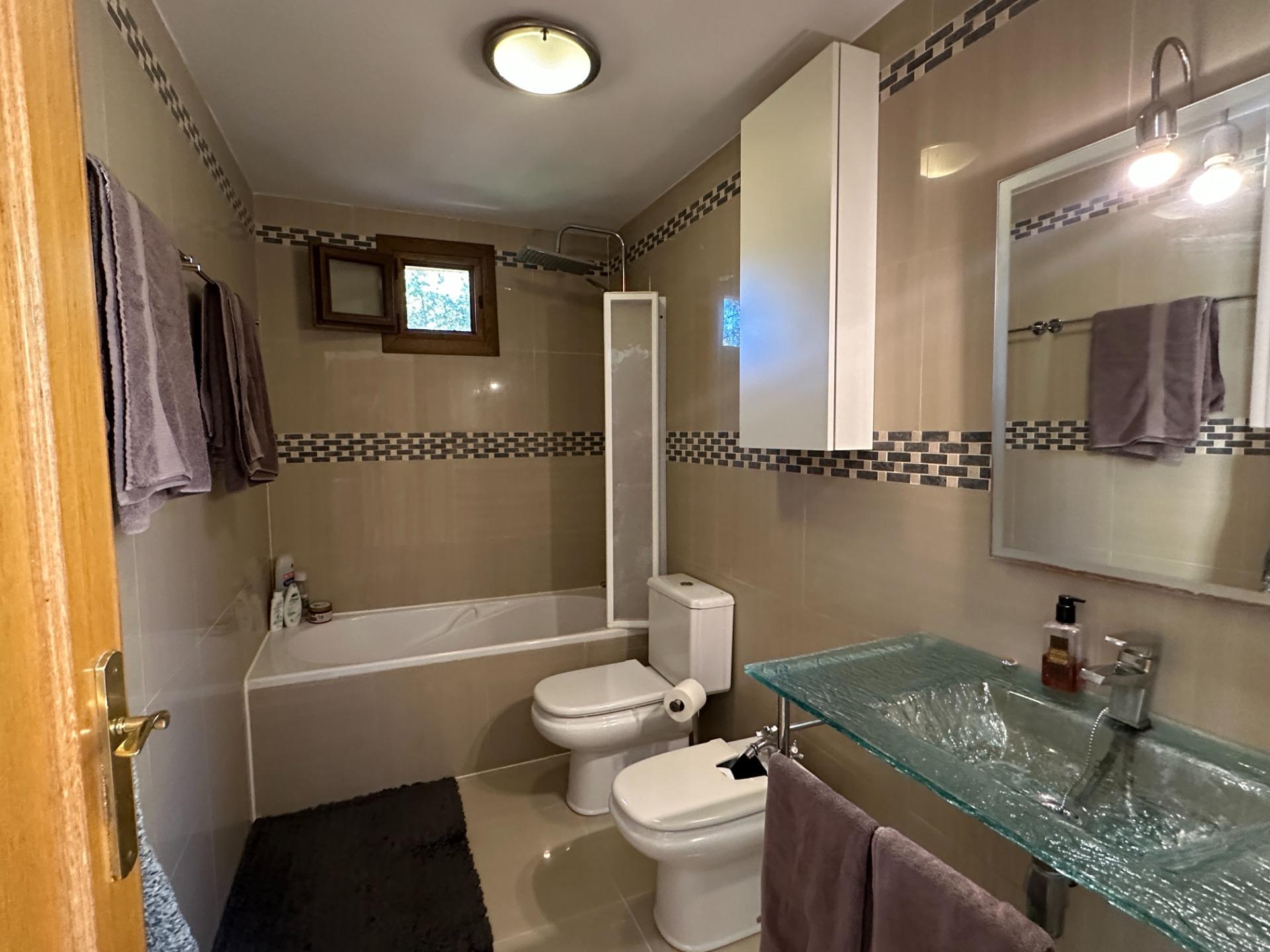 L’habitatge, distribuït en dues plantes, ofereix espais lluminosos i funcionals. A la planta principal hi trobem un acollidor saló-menjador amb abundant llum natural, una cuina pràctica amb rebost i accés directe a un ampli pati interior, perfecte per gaudir dels àpats a l’aire lliure o de moments de relax. La propietat disposa de tres dormitoris dobles, d’entre els quals destaca el principal amb bany en suite, a més de dos banys complets addicionals i un lavabo de cortesia, proporcionant comoditat per a tota la família o els convidats.