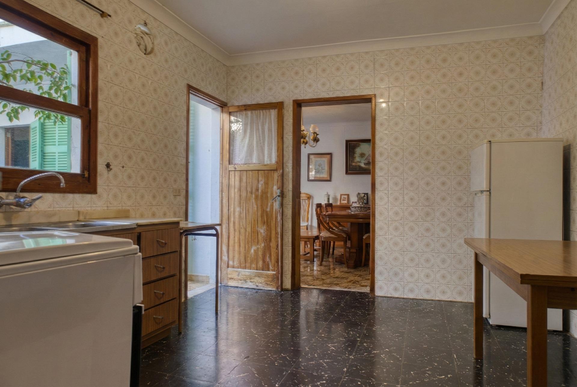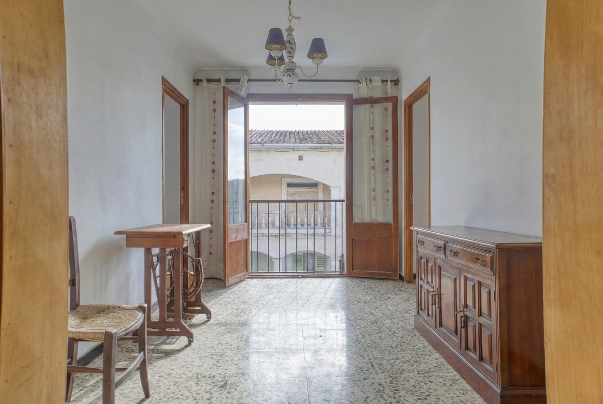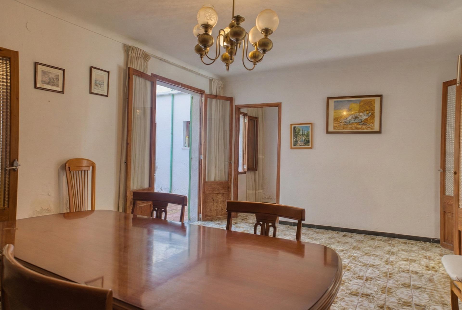 Die Aufteilung ist typisch für mallorquinische Dorfhäuser, grosszügige aneinandergereihte Zimmer, hohe Decken und dicke Wände, die die Temperatur auf natürliche Weise regulieren. Das Haus verfügt über mehrere Schlafzimmer, ein Esszimmer, eine Küche, funktionsfähige Bäder und einen Innenhof, der dem gesamten Gebäude Licht und Belüftung verleiht. Dieser Hof bietet Potenzial: Er kann überdacht oder erweitert werden, um zusätzliche Nutzfläche zu gewinnen.