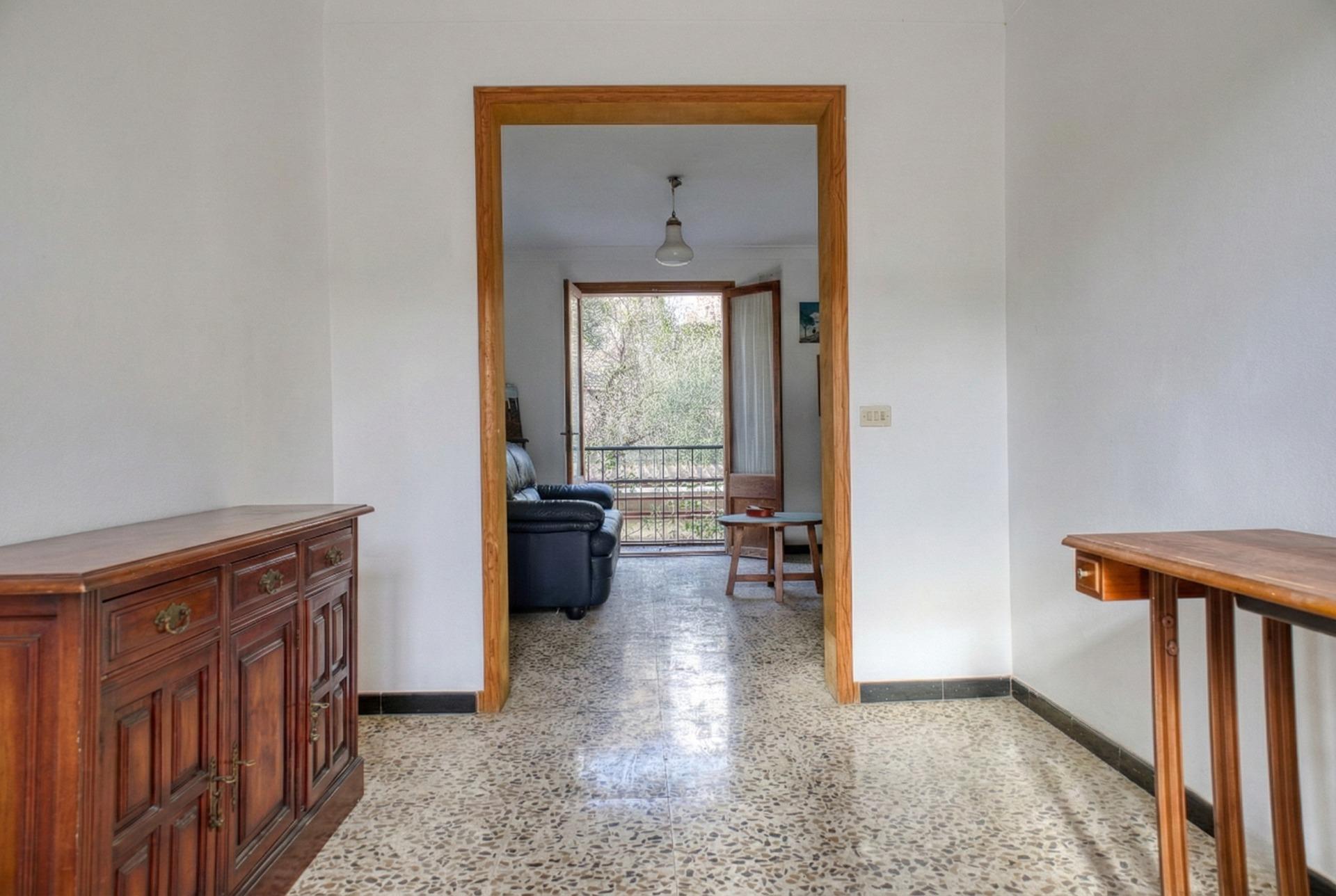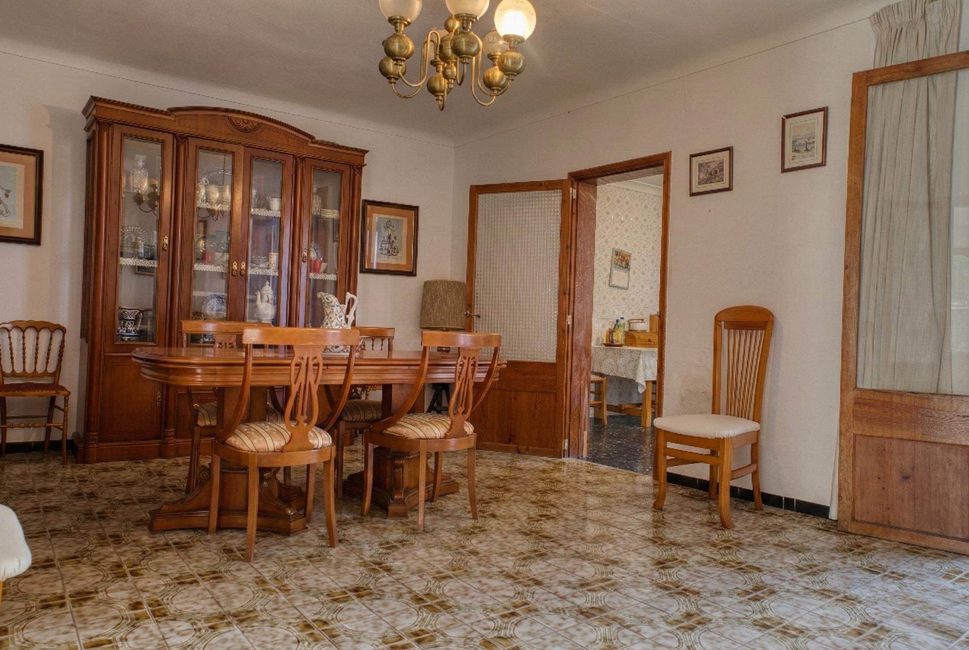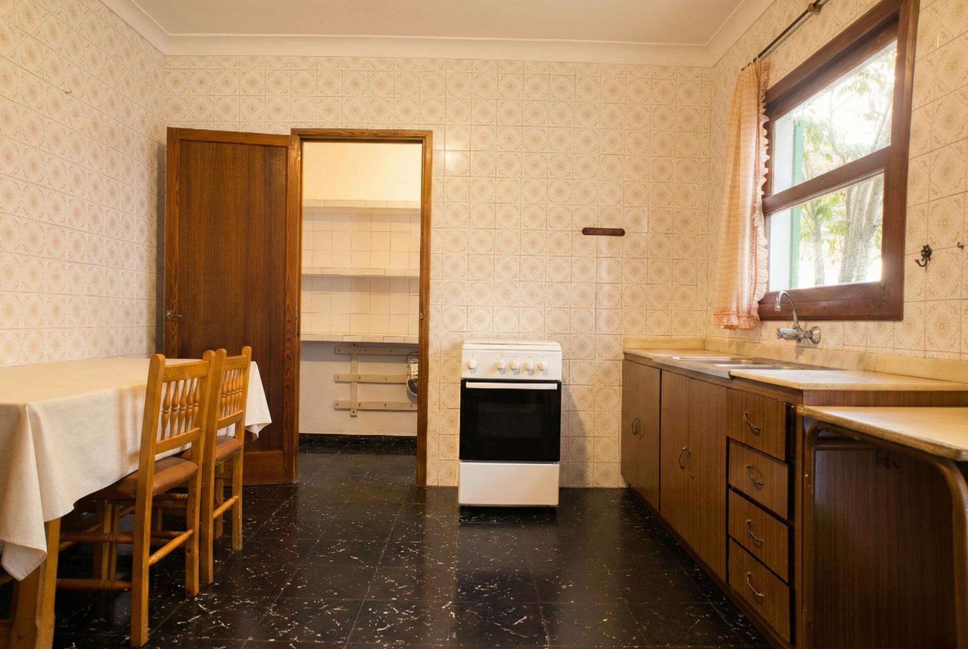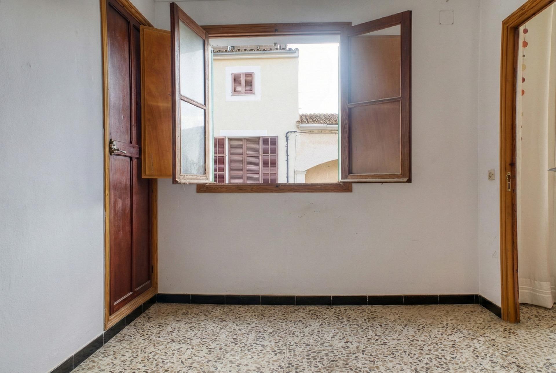 Die Aufteilung ist typisch für mallorquinische Dorfhäuser, grosszügige aneinandergereihte Zimmer, hohe Decken und dicke Wände, die die Temperatur auf natürliche Weise regulieren. Das Haus verfügt über mehrere Schlafzimmer, ein Esszimmer, eine Küche, funktionsfähige Bäder und einen Innenhof, der dem gesamten Gebäude Licht und Belüftung verleiht. Dieser Hof bietet Potenzial: Er kann überdacht oder erweitert werden, um zusätzliche Nutzfläche zu gewinnen.