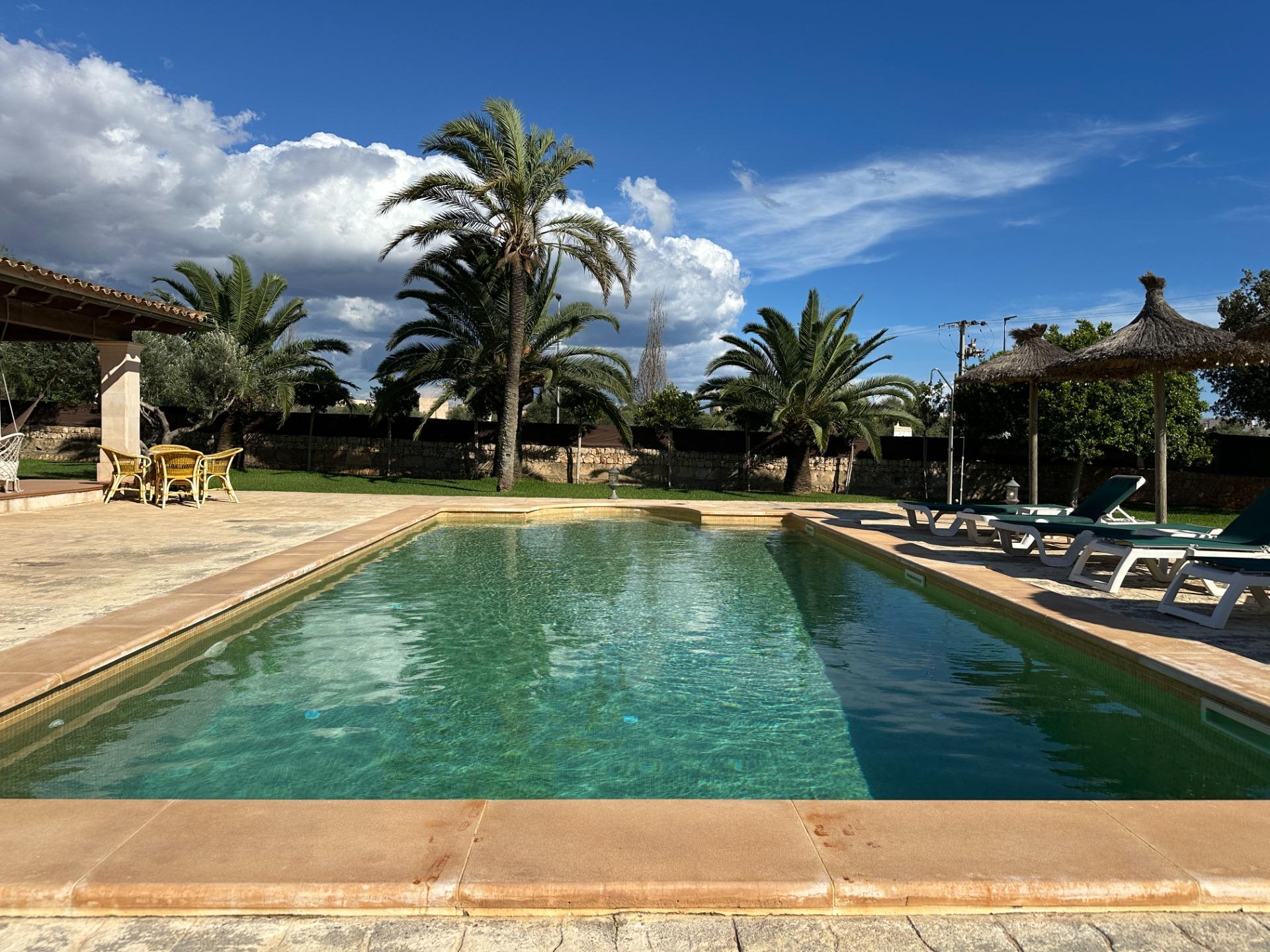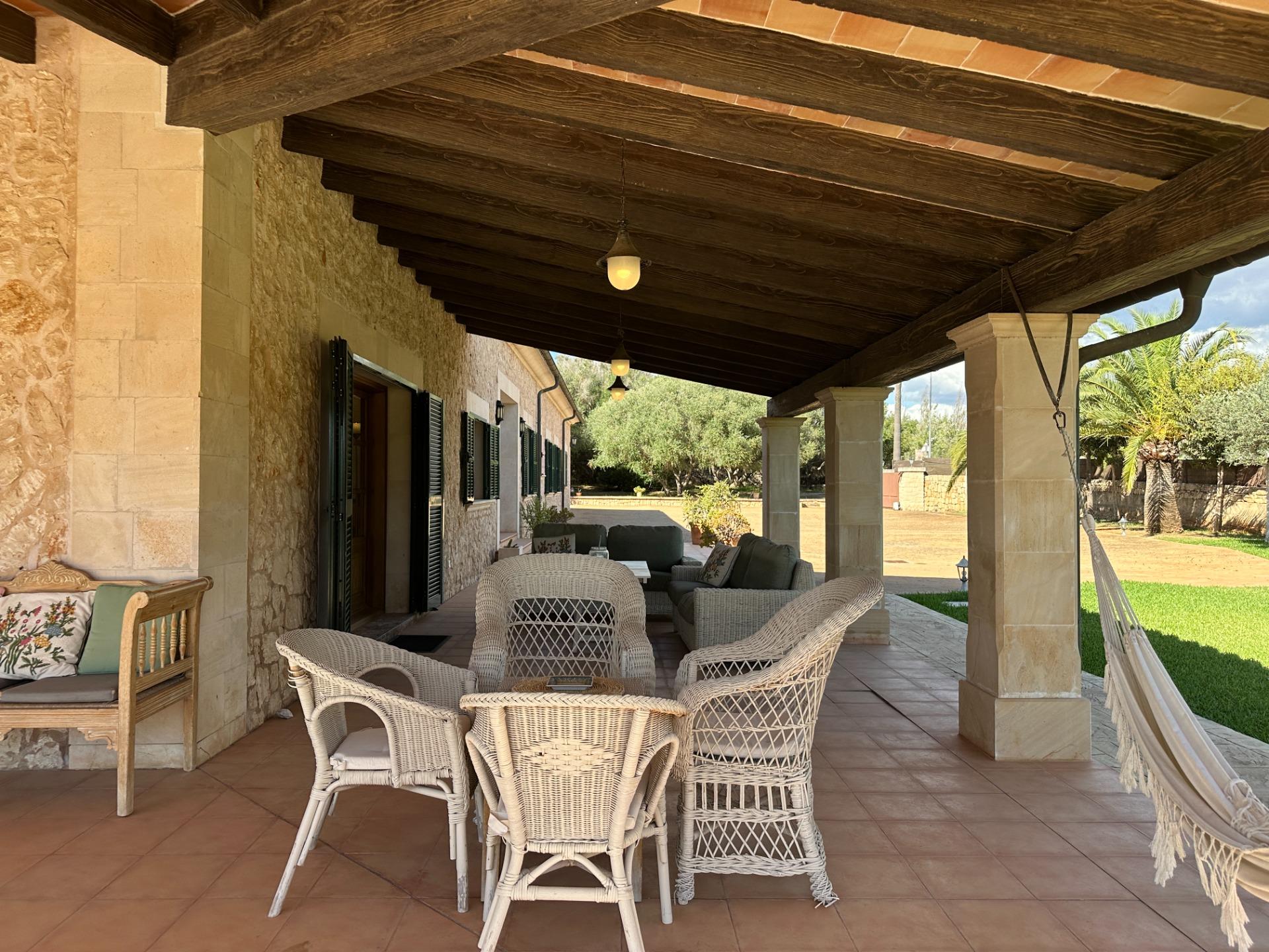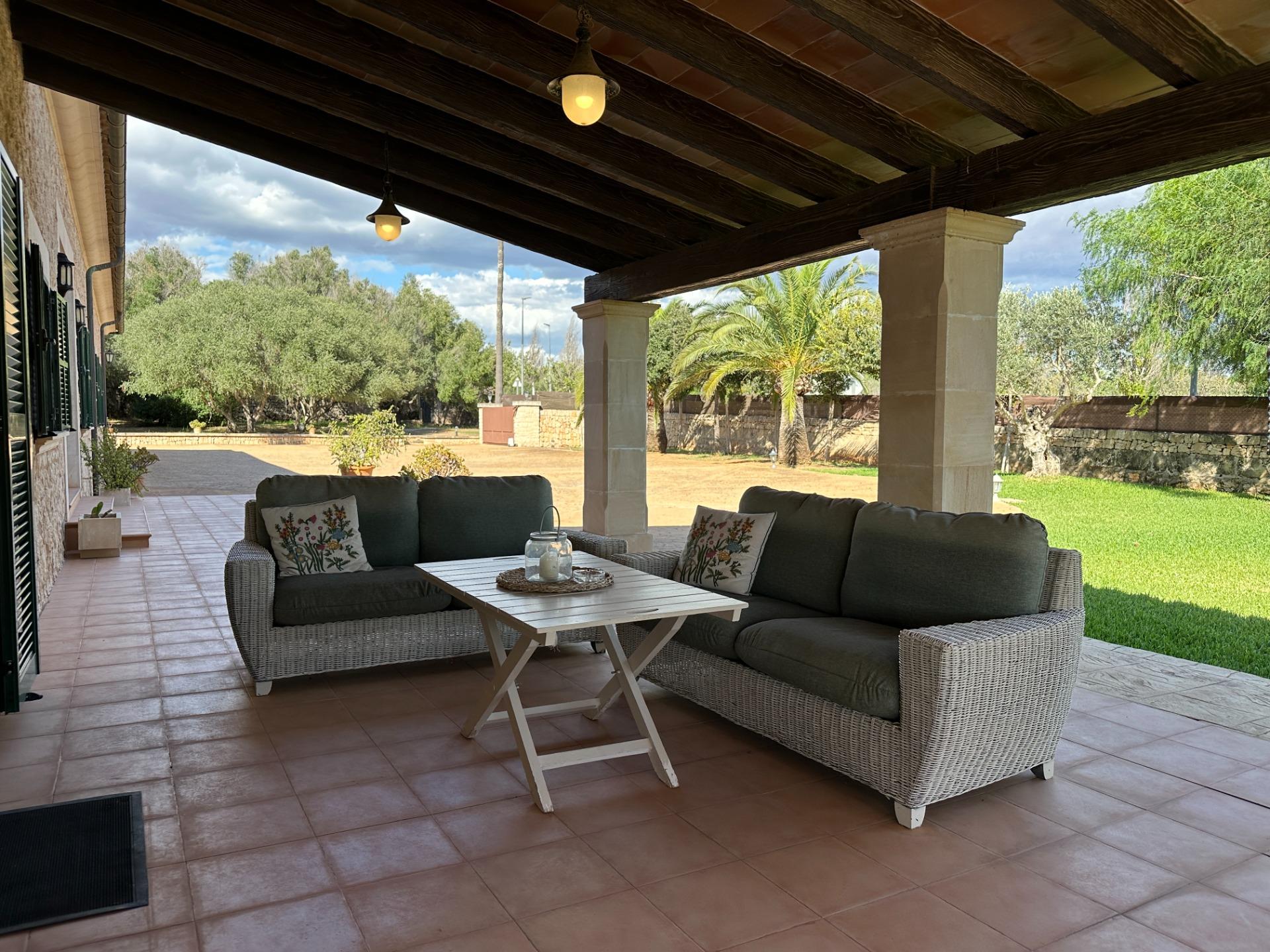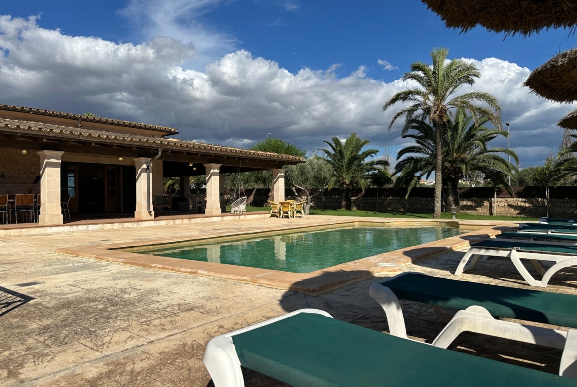 The exterior is, without doubt, the soul of the finca. Spacious terraces, a covered porch with an outdoor dining area, sun loungers and a barbecue create an outdoor living space truly designed for relaxation and enjoyment in good company. All of this is set within a landscaped garden that frames a 10 x 4 m saltwater pool with hydromassage, ideal for the long, sun-drenched Mallorcan summers. The property also includes a garage for 2 vehicles and a separate storage room.