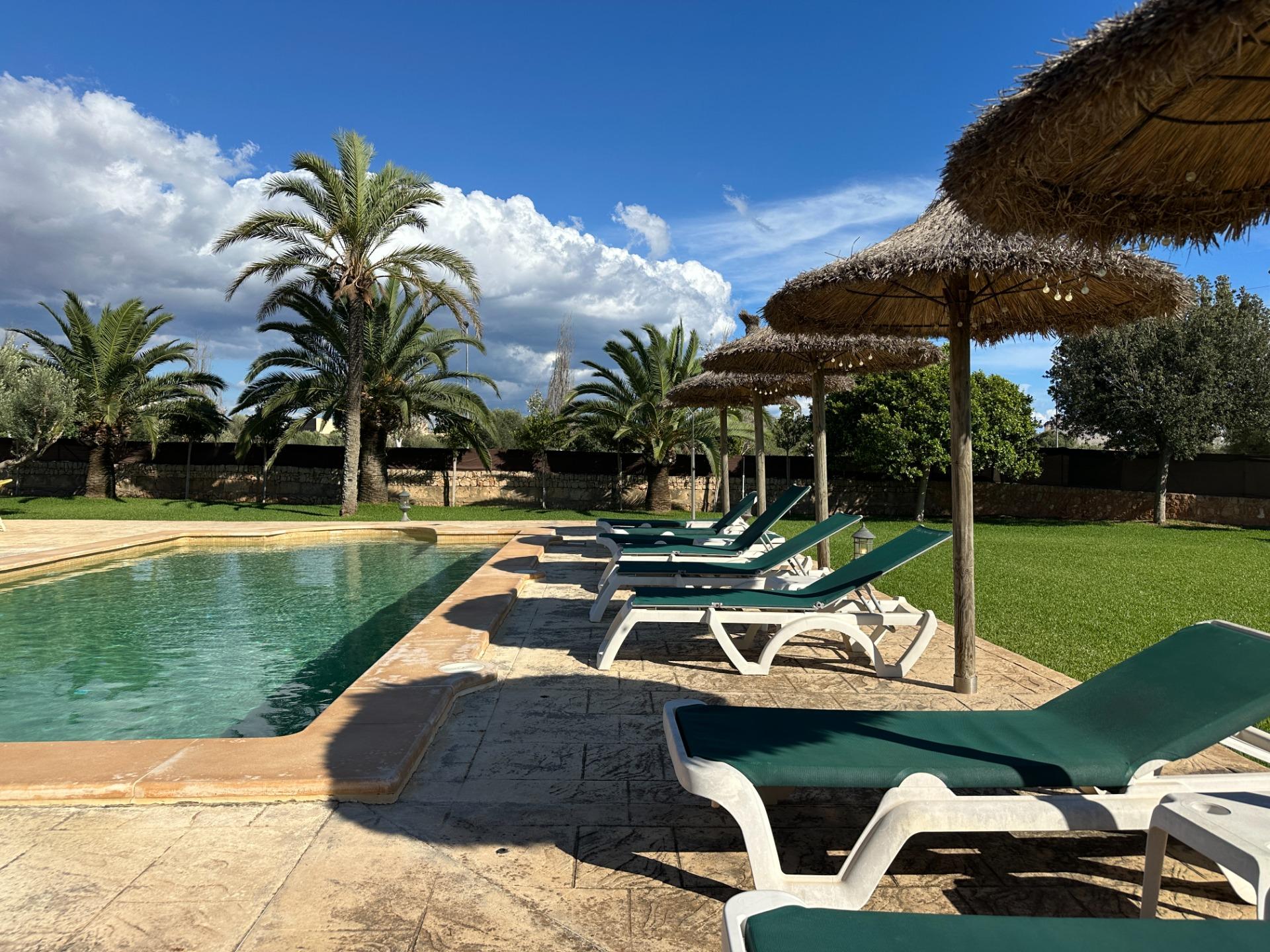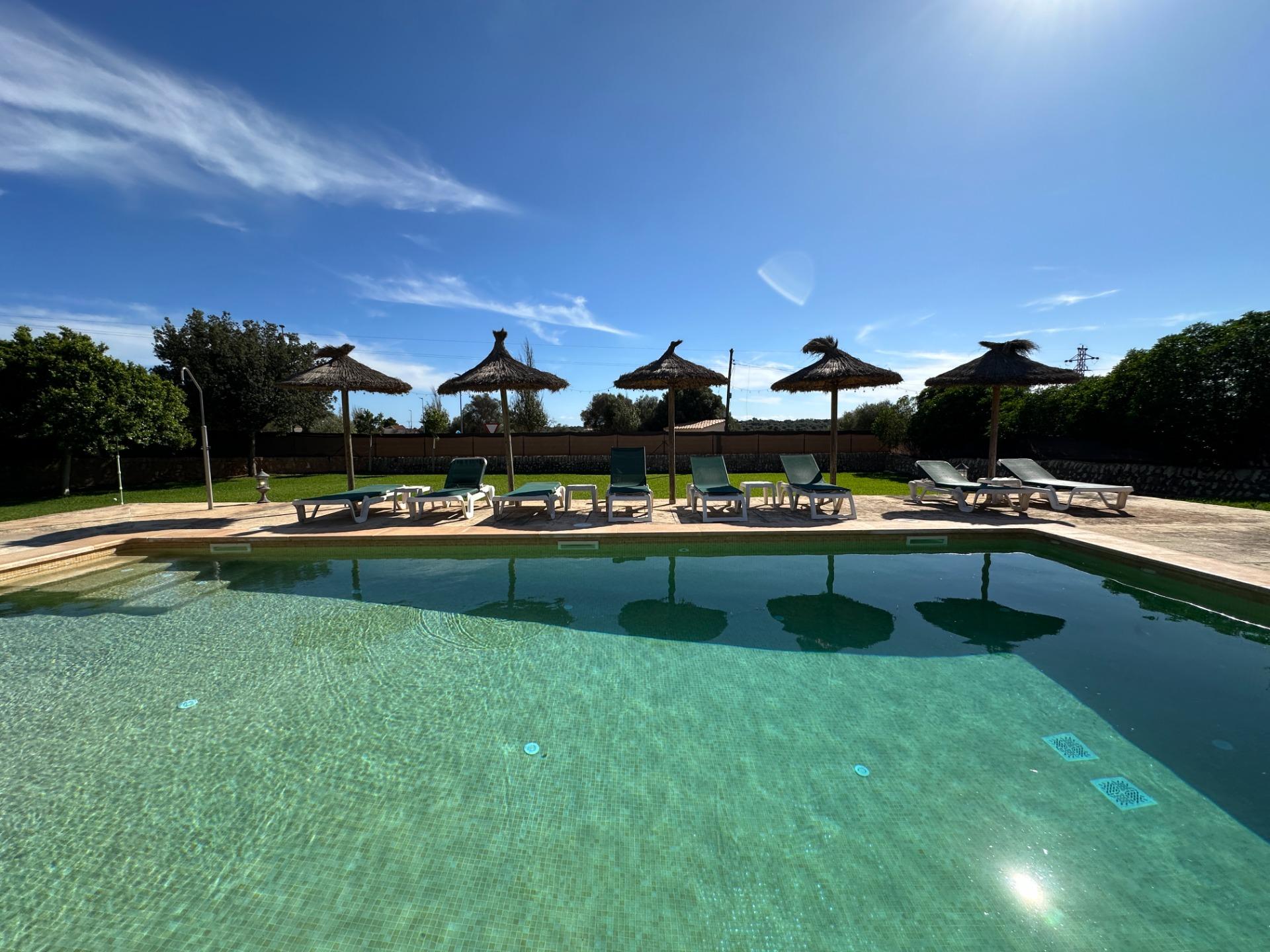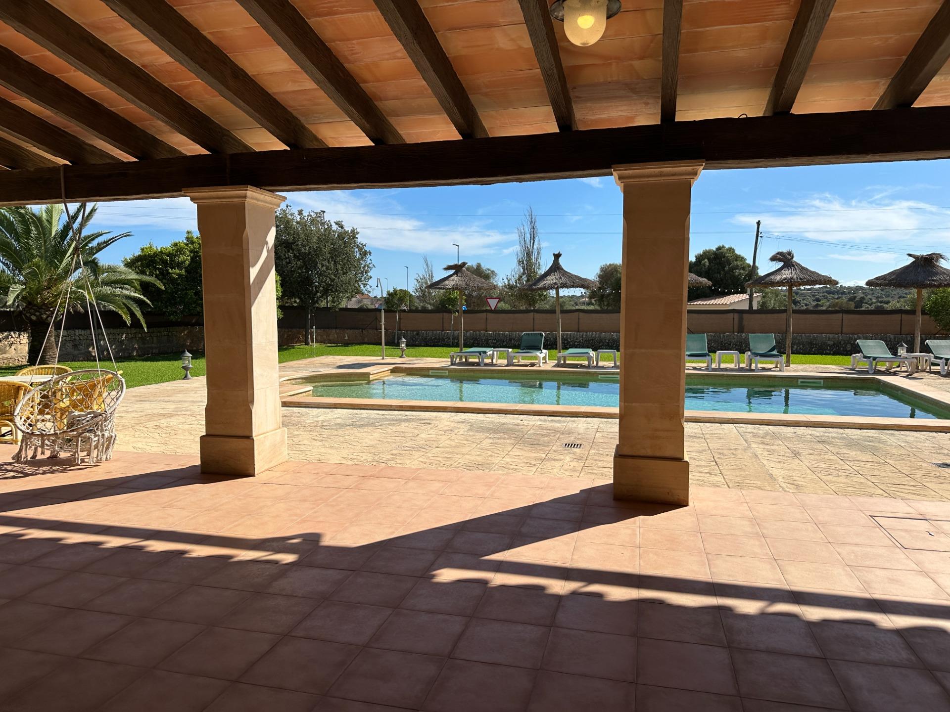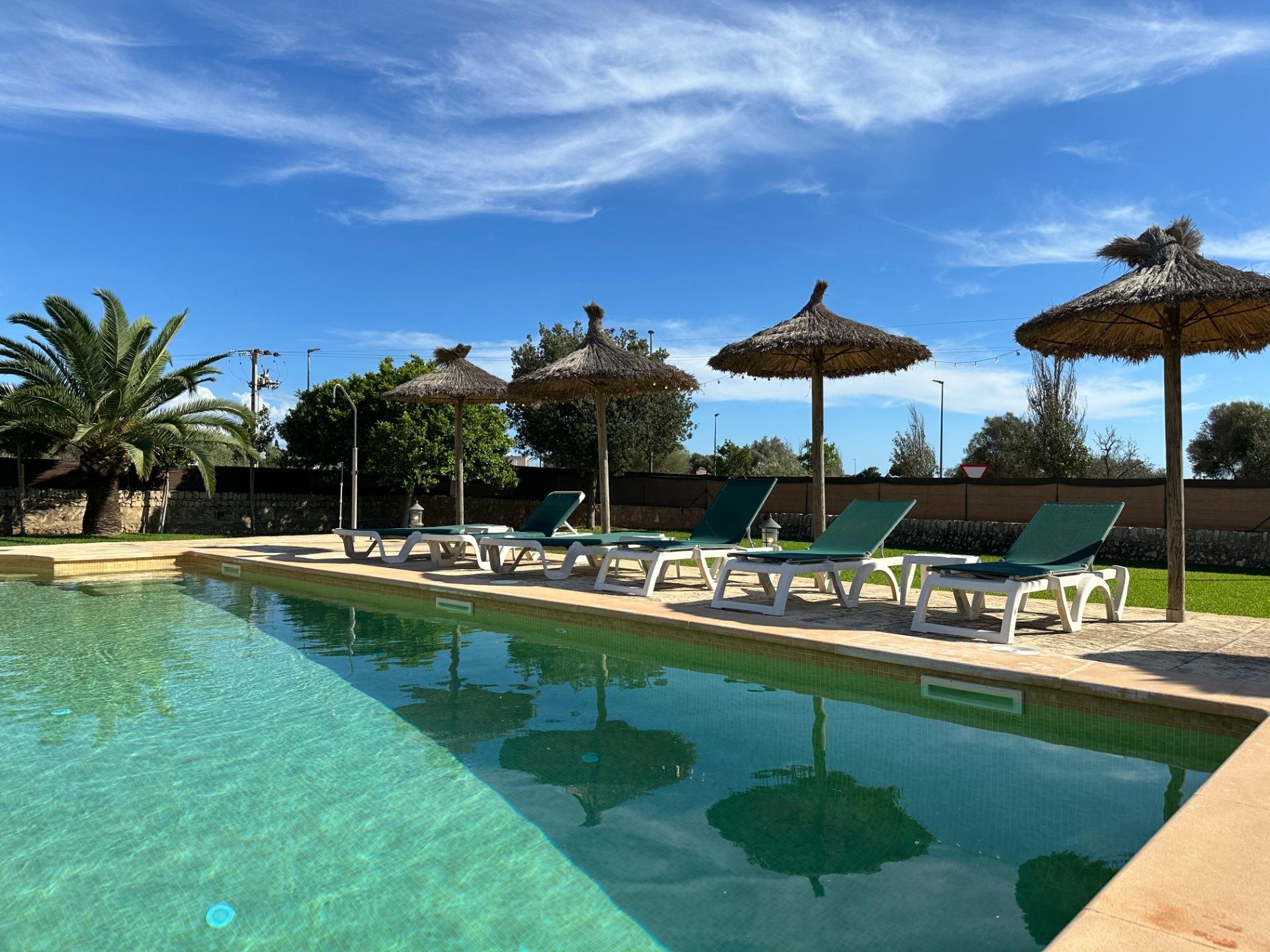 The exterior is, without doubt, the soul of the finca. Spacious terraces, a covered porch with an outdoor dining area, sun loungers and a barbecue create an outdoor living space truly designed for relaxation and enjoyment in good company. All of this is set within a landscaped garden that frames a 10 x 4 m saltwater pool with hydromassage, ideal for the long, sun-drenched Mallorcan summers. The property also includes a garage for 2 vehicles and a separate storage room.