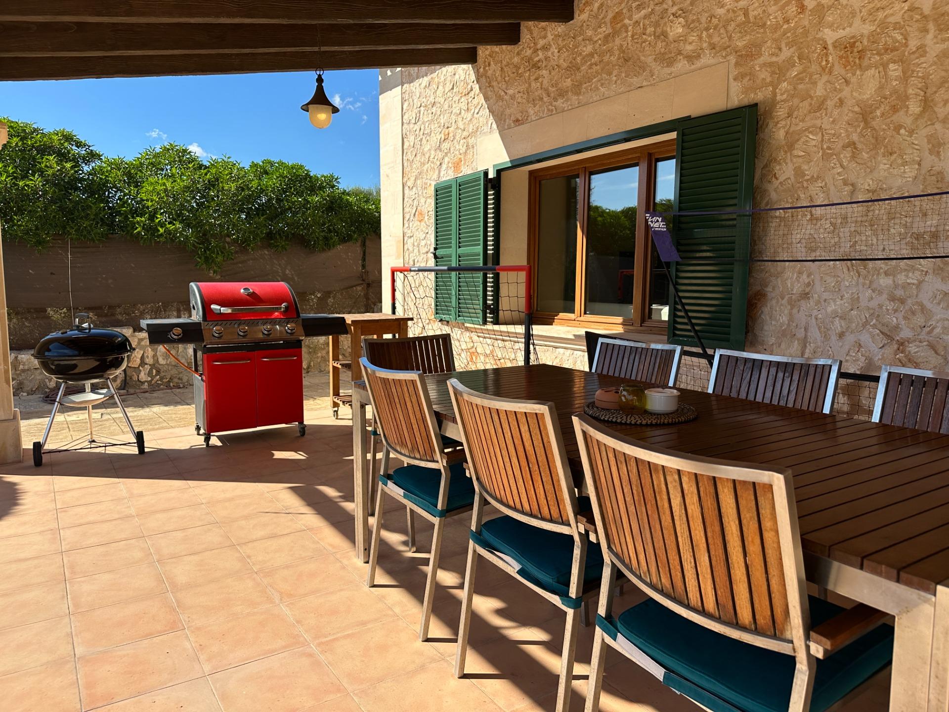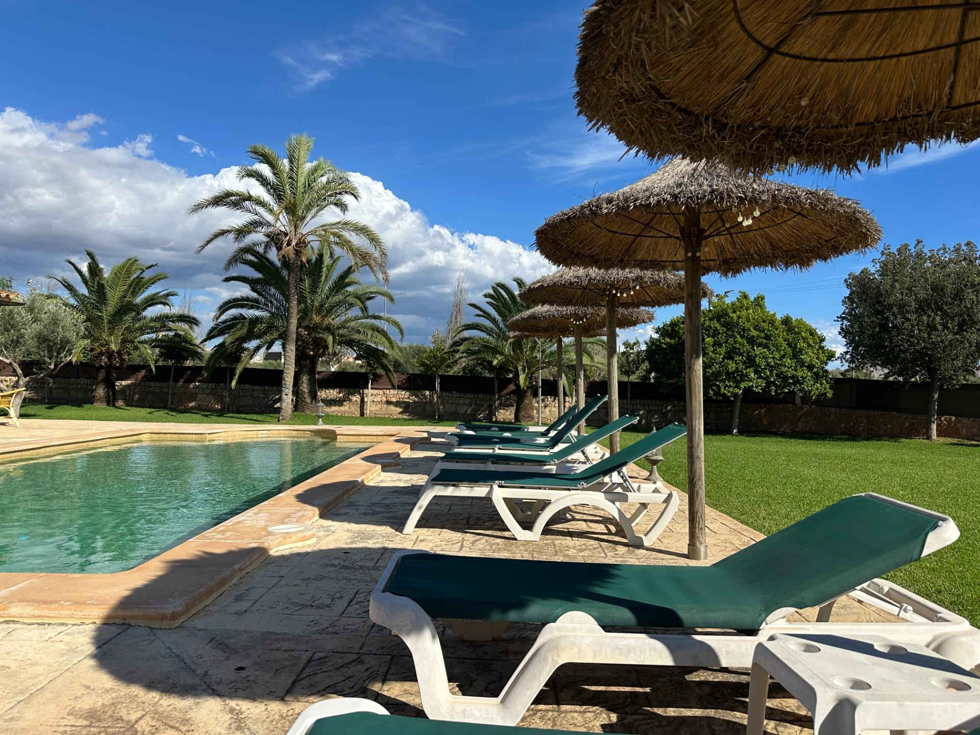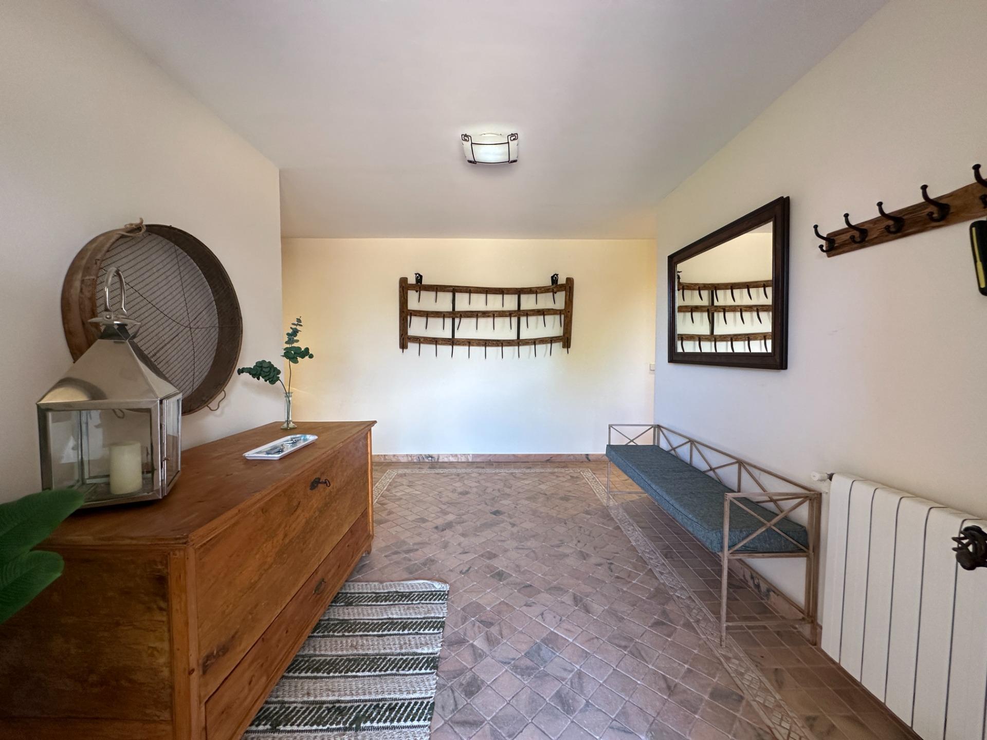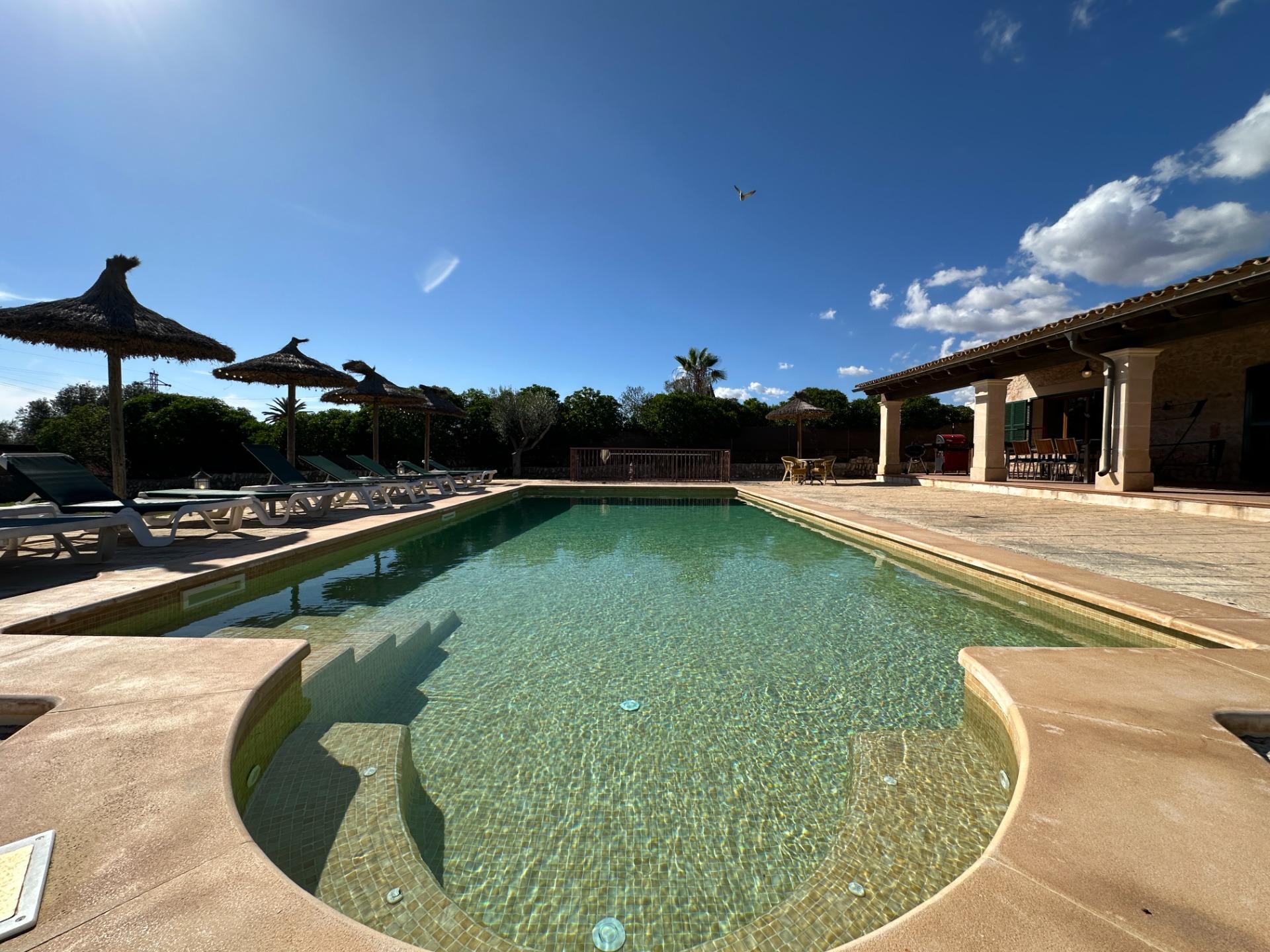The exterior is, without doubt, the soul of the finca. Spacious terraces, a covered porch with an outdoor dining area, sun loungers and a barbecue create an outdoor living space truly designed for relaxation and enjoyment in good company. All of this is set within a landscaped garden that frames a 10 x 4 m saltwater pool with hydromassage, ideal for the long, sun-drenched Mallorcan summers. The property also includes a garage for 2 vehicles and a separate storage room.
