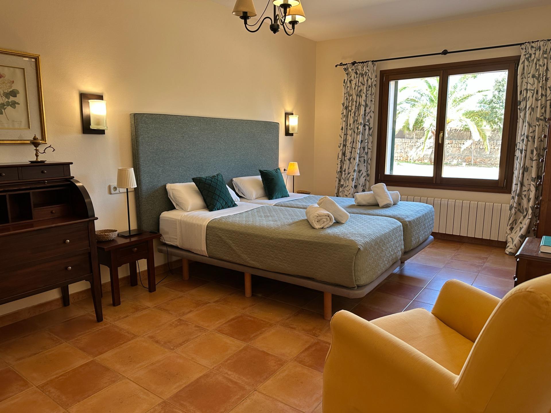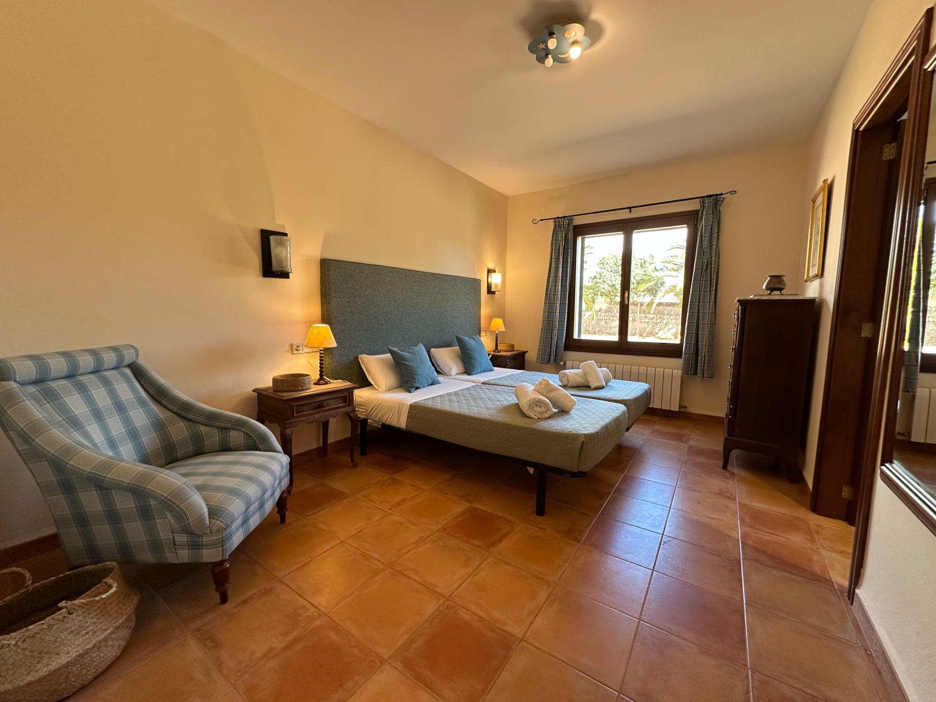 The property sits on a completely private plot of 3,550 m², with a main house of 492 m² spread over two floors that seamlessly blends the island’s traditional materials with modern comforts. Its 5 spacious double bedrooms and 4 full bathrooms can comfortably accommodate family, friends or tourist guests —up to 8 people in accordance with the current ETV licence.