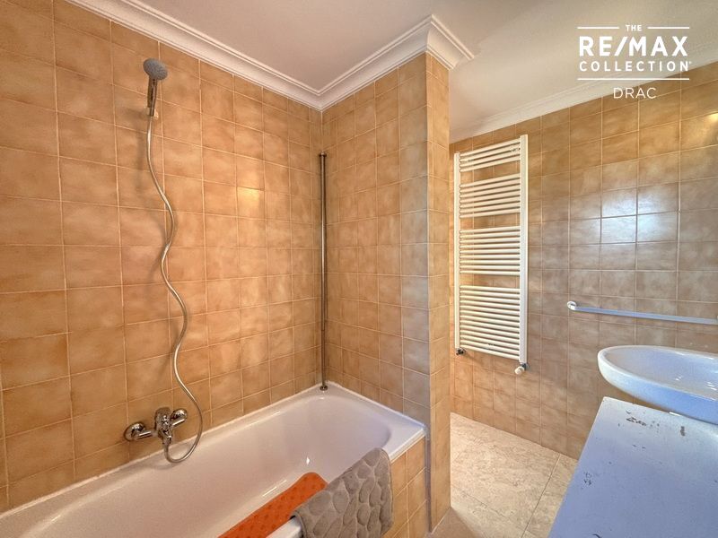 The generously proportioned flat with an area of 140 m² convinces with an optimal room layout and bright rooms. It has a spacious, light-filled living room with fireplace and central heating, which is present in all rooms of the flat.The kitchen is separate and has an adjoining utility room. The master bedroom offers an en suite bathroom with shower. In addition, there is another double bedroom, a smaller bedroom and another room with a bathroom that has a bathtub.From the living room, the kitchen and one of the rooms you can access a small terrace, which offers additional comfort.Conditions: Proof of solvency is required.1 month’s rent deposit plus 1 additional month’s rent as a guarantee.Electricity, water and garbage fees are to be borne by the tenant.