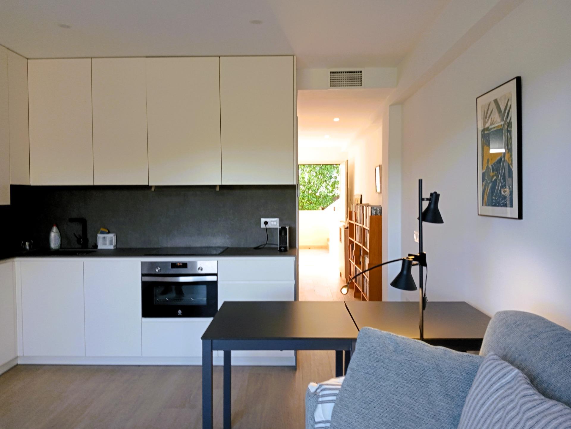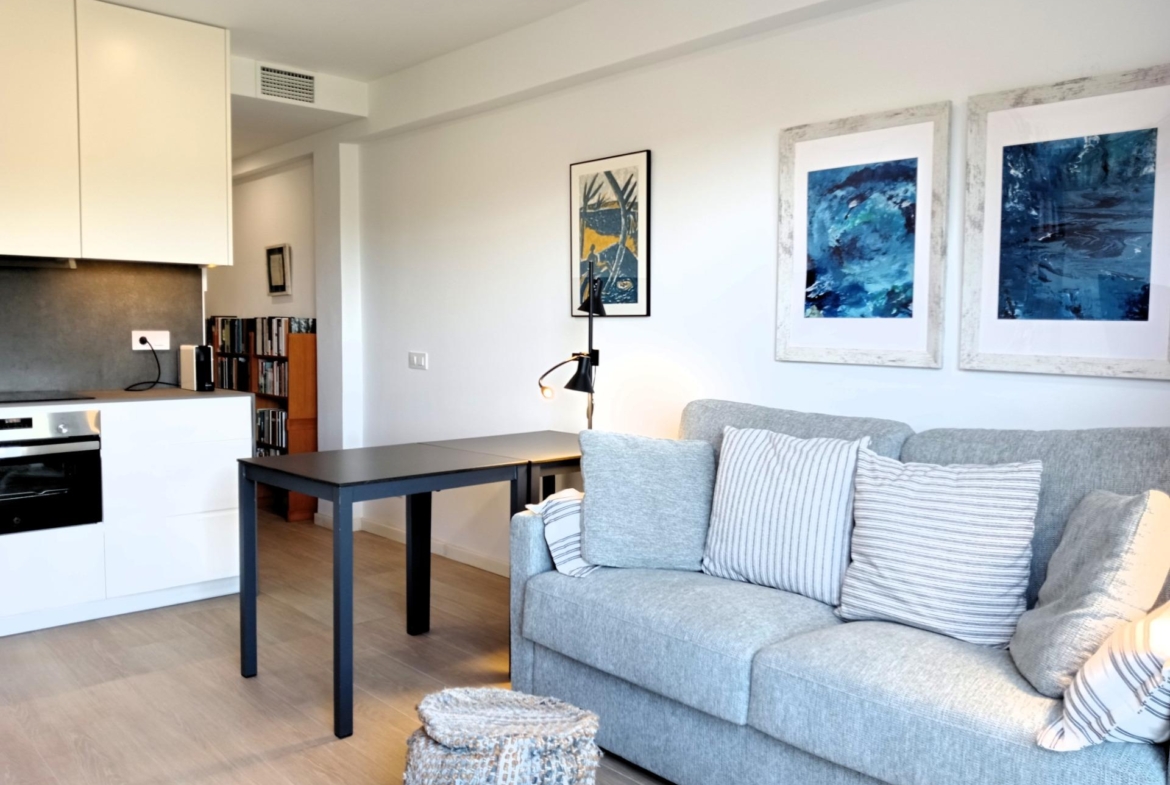 Distribución: 1 dormitorio doble, 1 baño moderno y un concepto abierto de salón-cocina que maximiza el espacio.