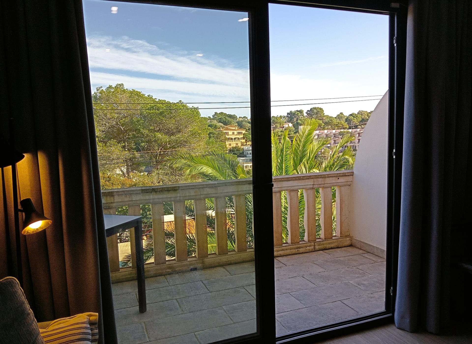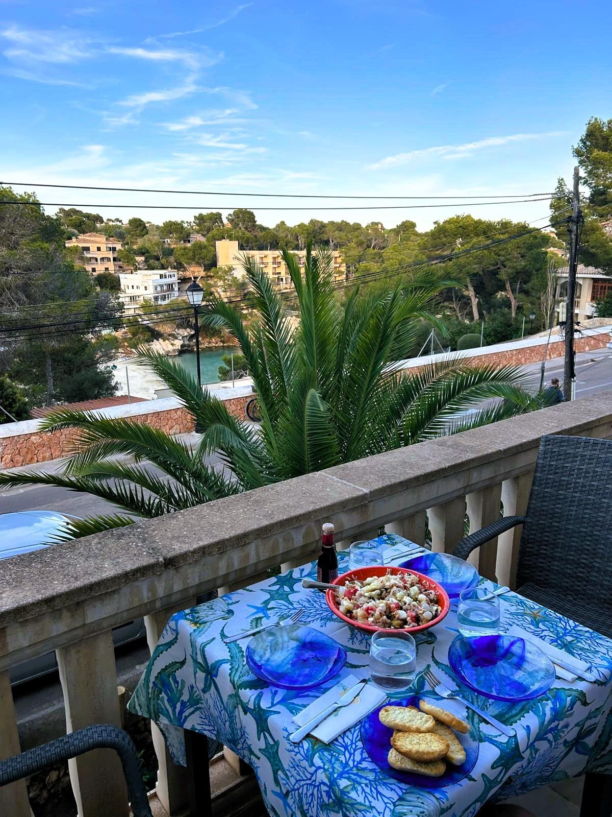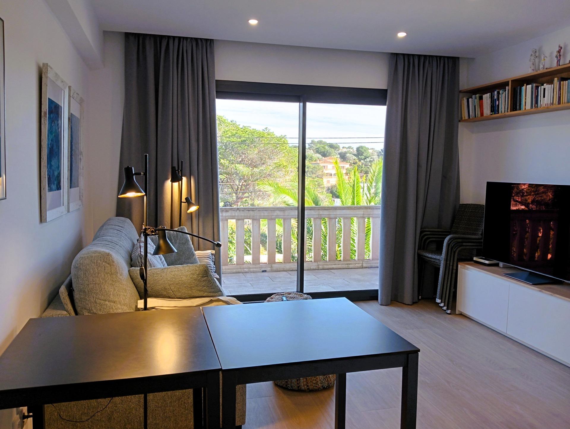 The heart of this home is the living room, which opens onto a private terrace with unobstructed views of the turquoise waters of Cala Santanyí. Furthermore, the property features a strategic orientation that catches the morning sun, providing fantastic natural light without the intense heat of summer afternoons