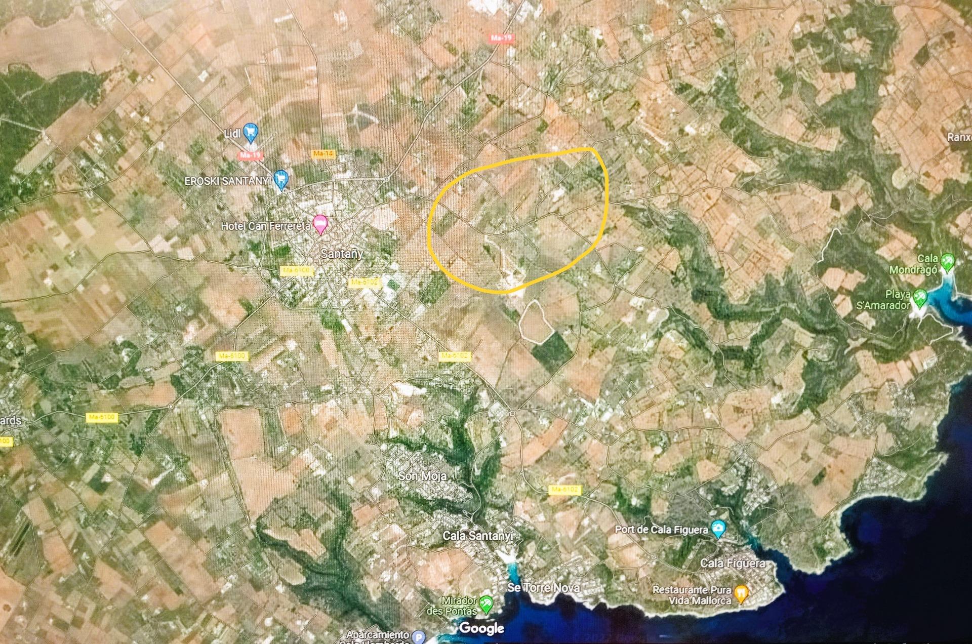Land near Santanyí. The access is by a quiet asphalted road and it is easy to go by bike (the main square is about 1500 meters far away). There is a project for a house with 232 m2 but it can be extended up to 515 m2. The property already has electricity connection and water supply. The plan is ready for a two floors traditional majorcan country house with 4 bedrooms, swimming pool and terraces. All the plot is enclosed with traditional stone wall.
