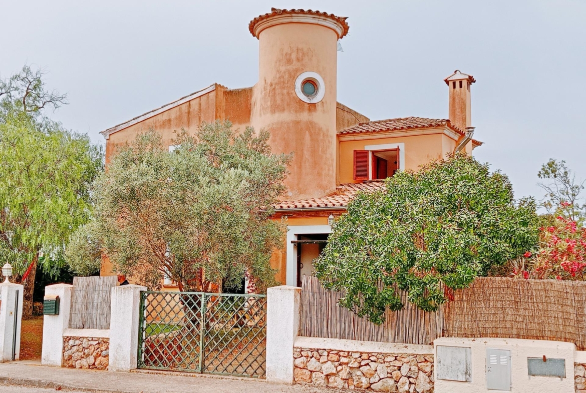 This villa, located in a quiet area, dates back to the 90s and is in a good state of conservation. Below, I detail its characteristics:Location: It is located in Sa Ràpita, a town in the south of the island of Mallorca, Distribution:Ground floor:Receiver.Room with bathroom.Spacious living room with American style kitchen.Garage.First floor:Three double bedrooms:Two of them have access to a spacious terrace with beautiful views of the neighbourhood.One of the bedrooms has an en-suite bathroom.The other two share another bathroom.Upper terrace: Offers spectacular views of the sea from afar.This villa is ideal for those looking for a quiet place close to the sea.The garden of this house is a lovely space with many possibilities. and offers a quiet and relaxing environment.It has enough space to create a pool if you so desire.The vegetation includes trees and shrubs.You can design rest areas and play areasPrivacy is guaranteed, as in front of the house there is a large protected green area that will never be developed. Imagine enjoying starry nights or outdoor gatherings in this space.Sa Ràpita is a small coastal town on the south coast of Mallorca, located about 11 kilometres southwest of Campos.Beaches:Sa Ràpita Beach: Wide and beautiful, this beach has a yacht club and restaurants overlooking the sea. It is an ideal place to relax and enjoy the sun.Es Trenc: A short distance from Sa Ràpita, stretches one of the most famous beaches on the island, Es Trenc. Its crystal clear waters and white sand make it a natural paradise.Ses Covetes Beach: Another nearby gem, this beach is located between Sa Ràpita and Colonia de Sant Jordi.Access:From Palma, it can be reached by car in approximately 40 minutes.You can also take bus line 518 from Campos to Sa Ràpita.In short, Sa Ràpita is a perfect destination to enjoy the beach, disconnect and appreciate the natural beauty