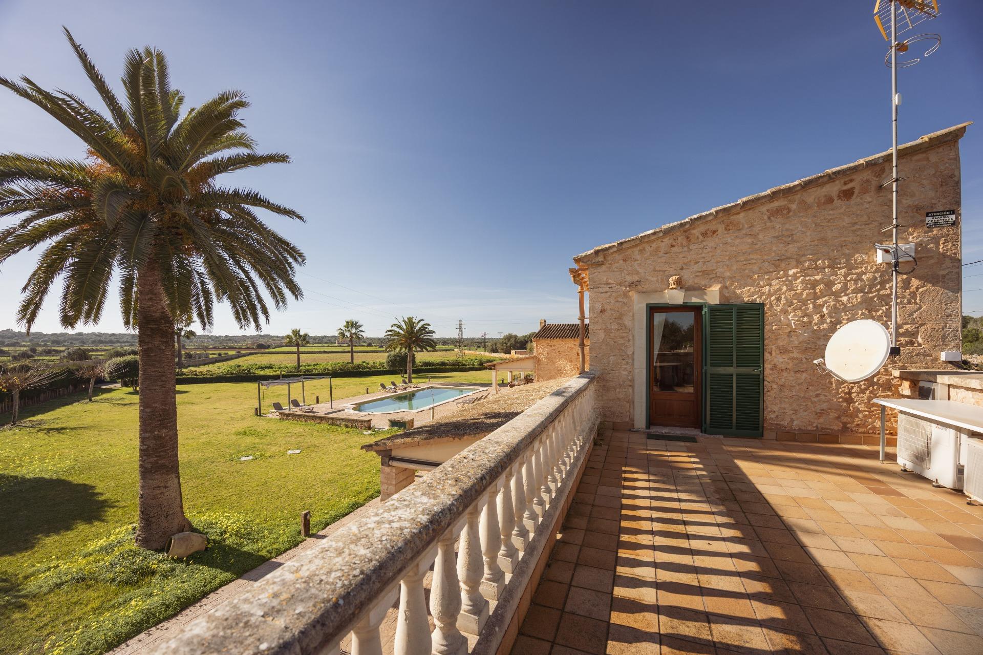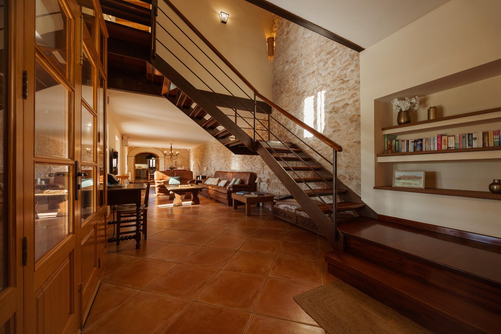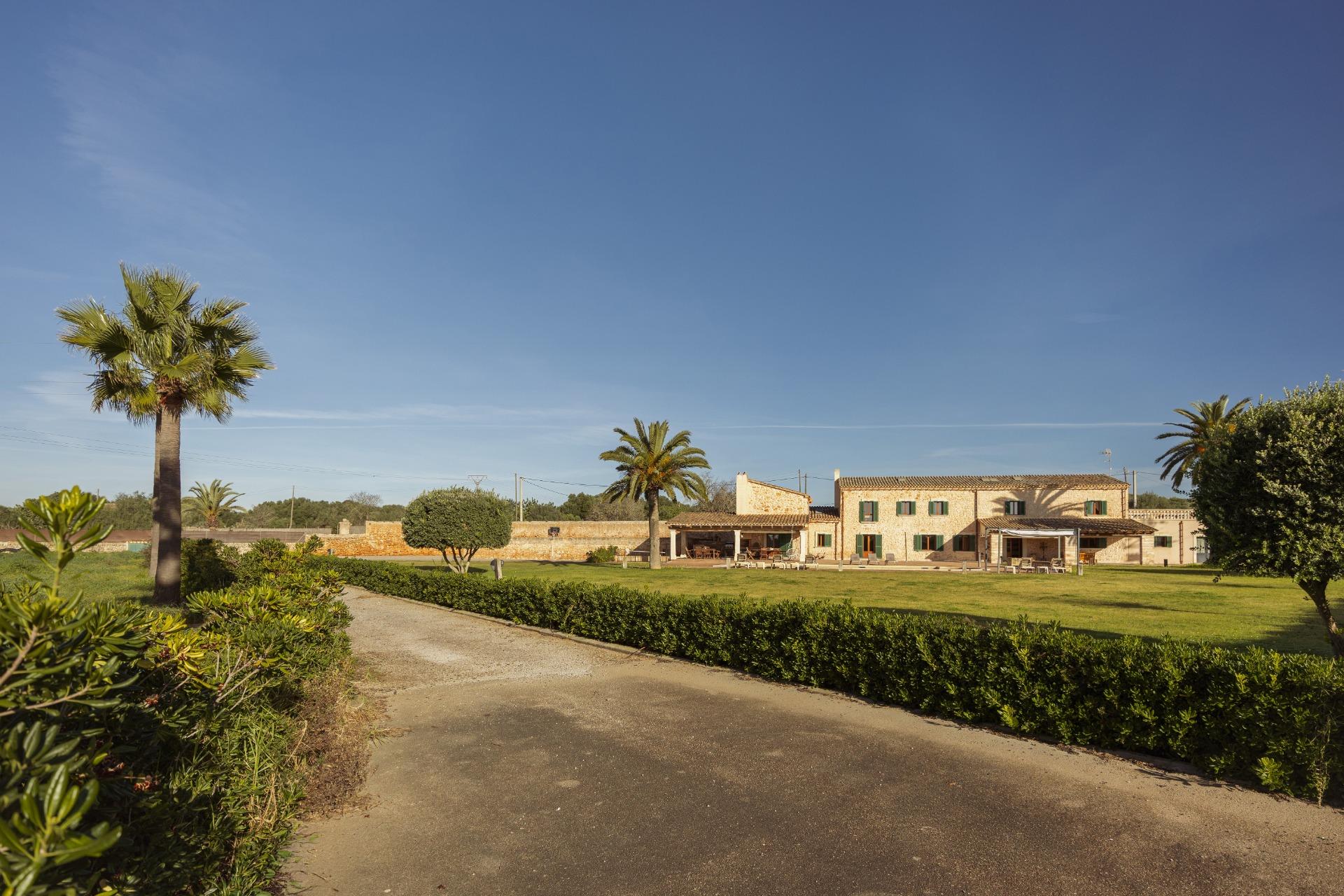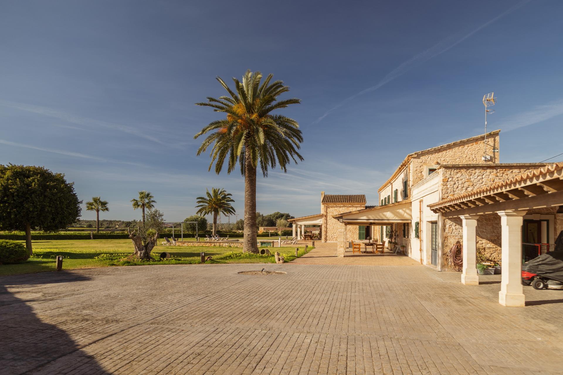 La casa es de arquitectura tradicional mallorquina, está situada en las afueras del pueblo en un terreno de 26.618 m2. Consta de una vivienda unifamiliar aislada con piscina, con una superficie en dos plantas de 517m2, piscina de 82 m2 de espejo de agua, 520 m2 de terrazas. Paredes interiores y exteriores de piedra. La cocina y el salón comedor se encuentran en la planta baja, dispone de 1 habitación doble con baño en la planta baja y tres habitaciones dobles, una con baño en suite y las otras dos con baño compartido ,en la primera planta. En la planta baja también tiene un baño extra para invitados.Porches 161 m2Zona jardín con 1.800 m2 de césped. Sala de máquinas subterránea 55 m2.