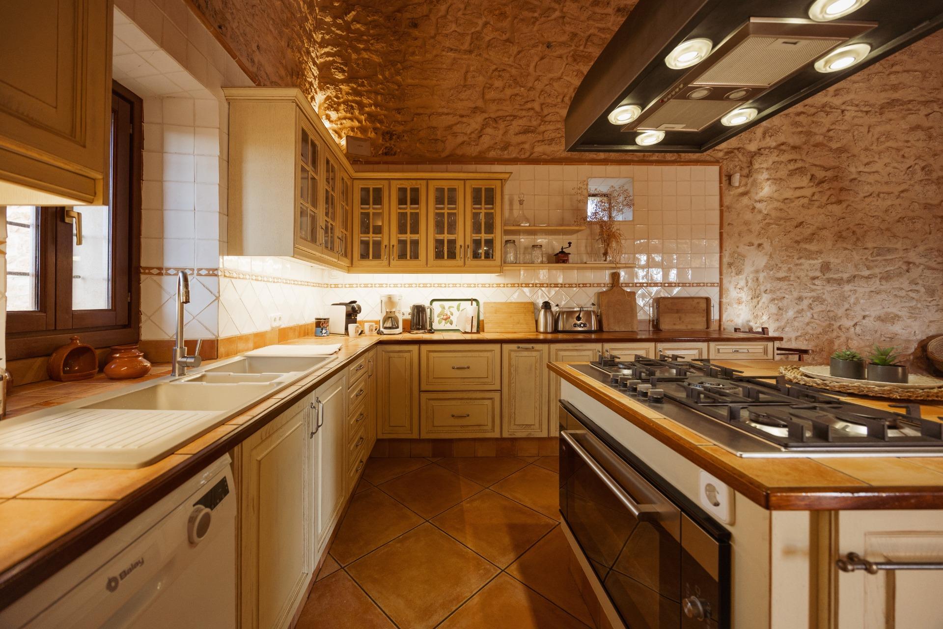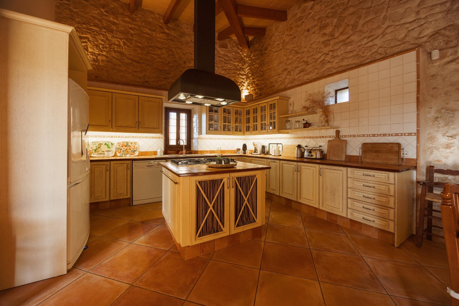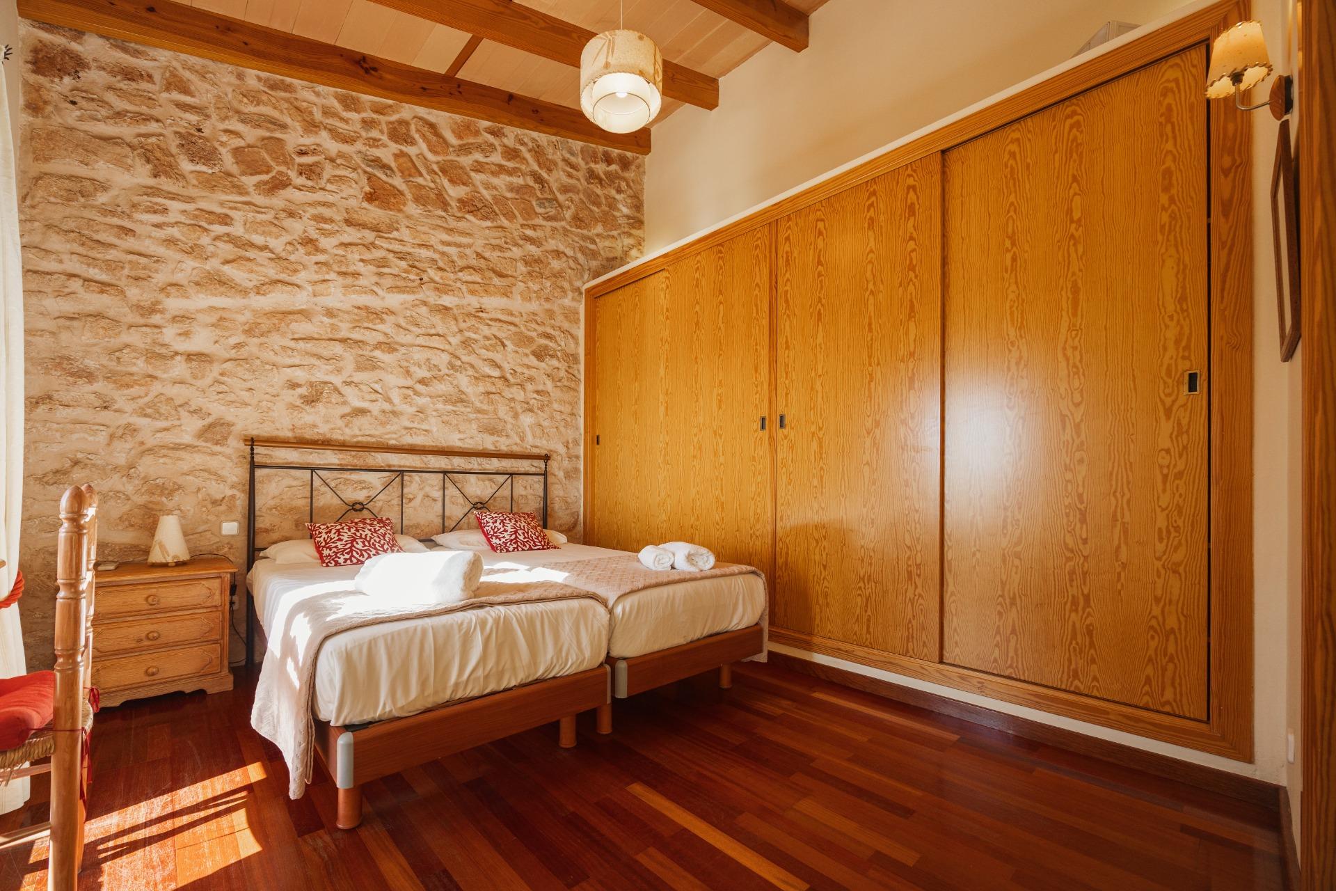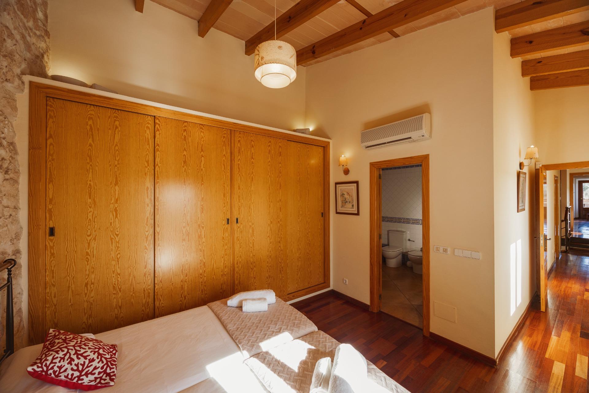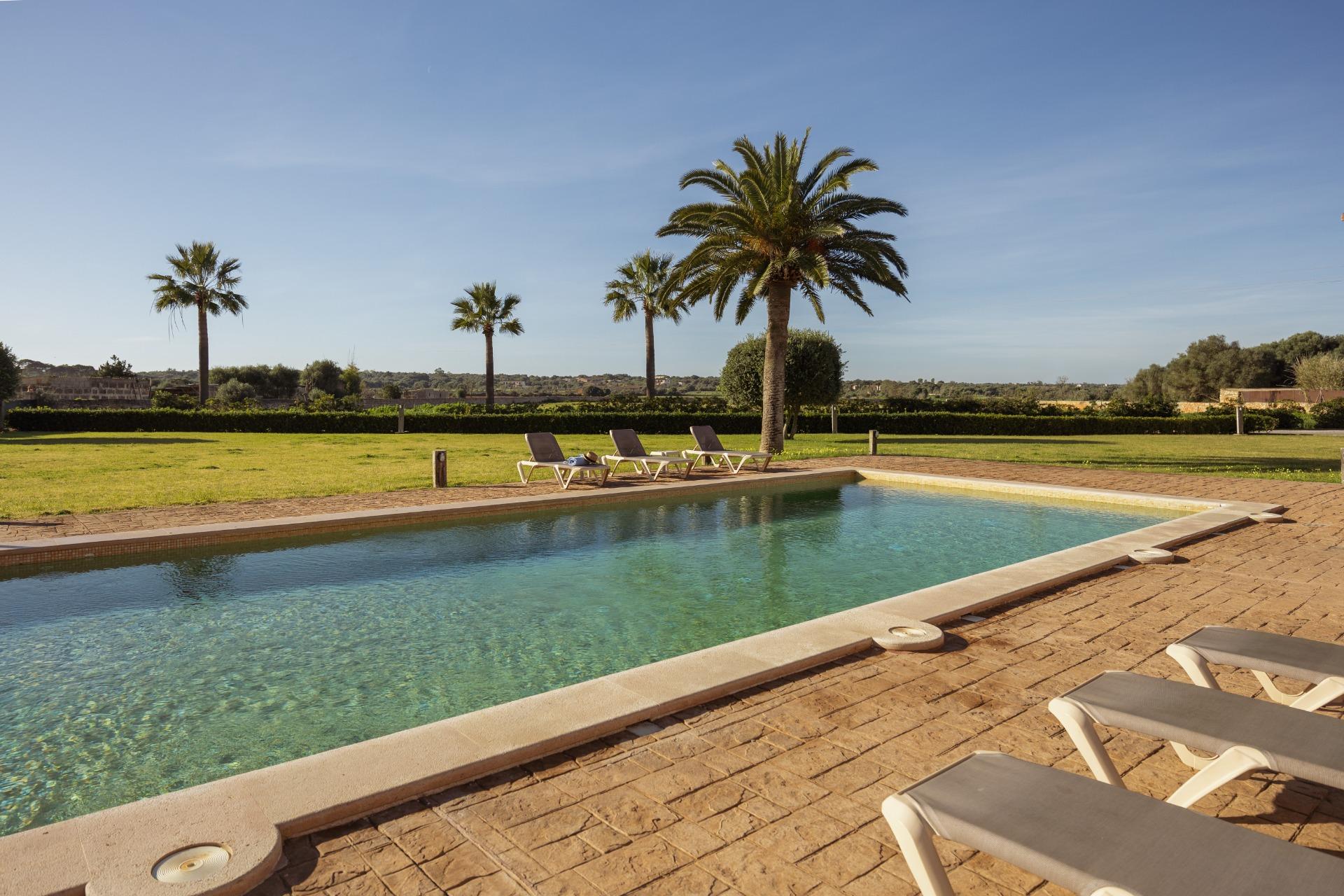 La casa es de arquitectura tradicional mallorquina, está situada en las afueras del pueblo en un terreno de 26.618 m2. Consta de una vivienda unifamiliar aislada con piscina, con una superficie en dos plantas de 517m2, piscina de 82 m2 de espejo de agua, 520 m2 de terrazas. Paredes interiores y exteriores de piedra. La cocina y el salón comedor se encuentran en la planta baja, dispone de 1 habitación doble con baño en la planta baja y tres habitaciones dobles, una con baño en suite y las otras dos con baño compartido ,en la primera planta. En la planta baja también tiene un baño extra para invitados.Porches 161 m2Zona jardín con 1.800 m2 de césped. Sala de máquinas subterránea 55 m2.