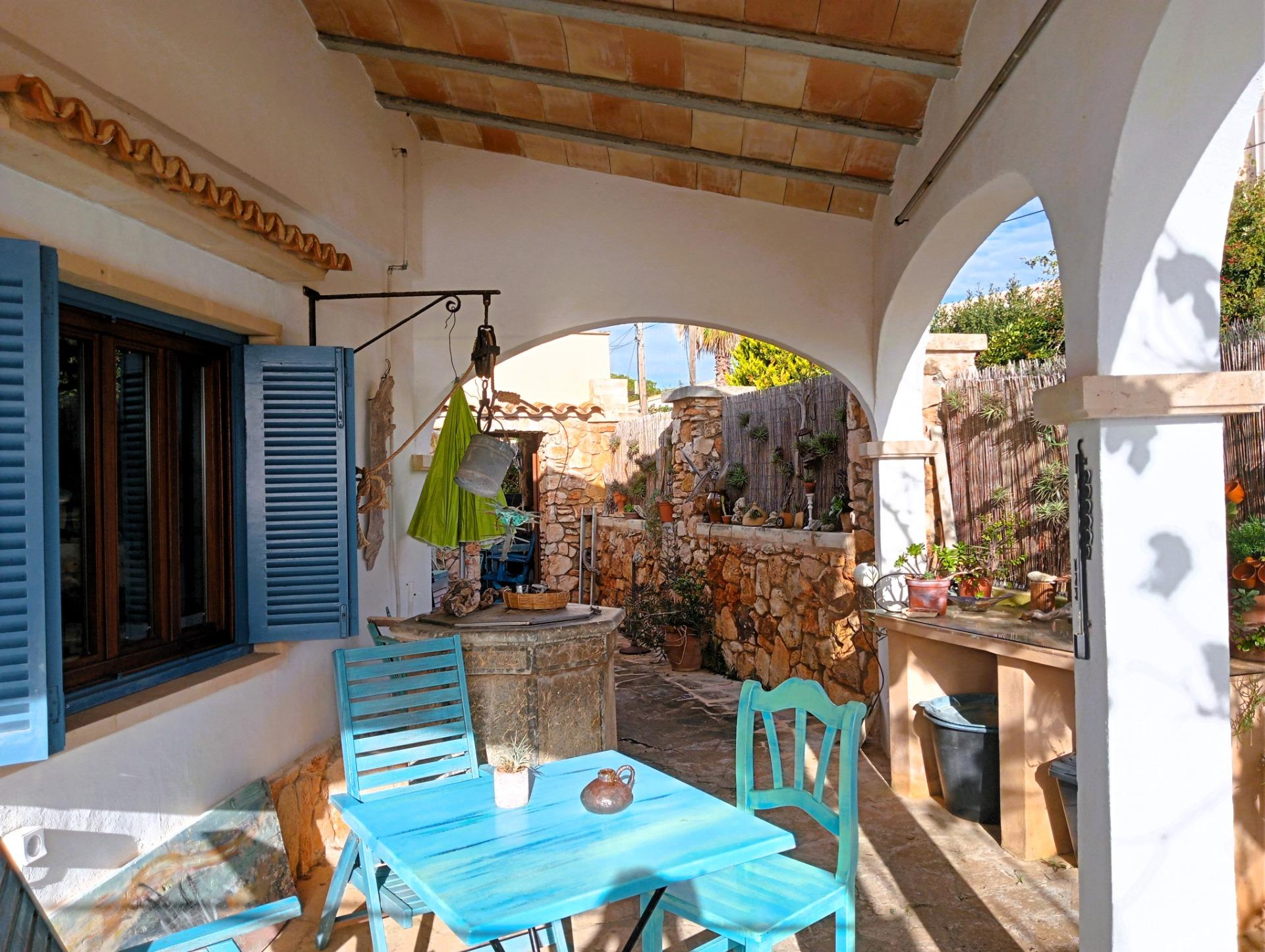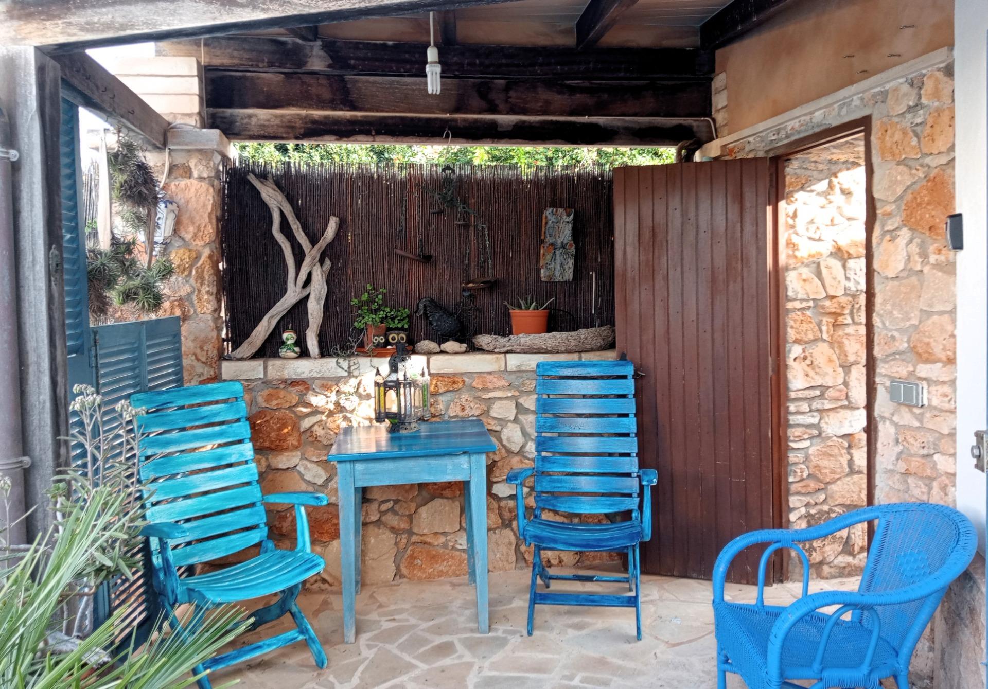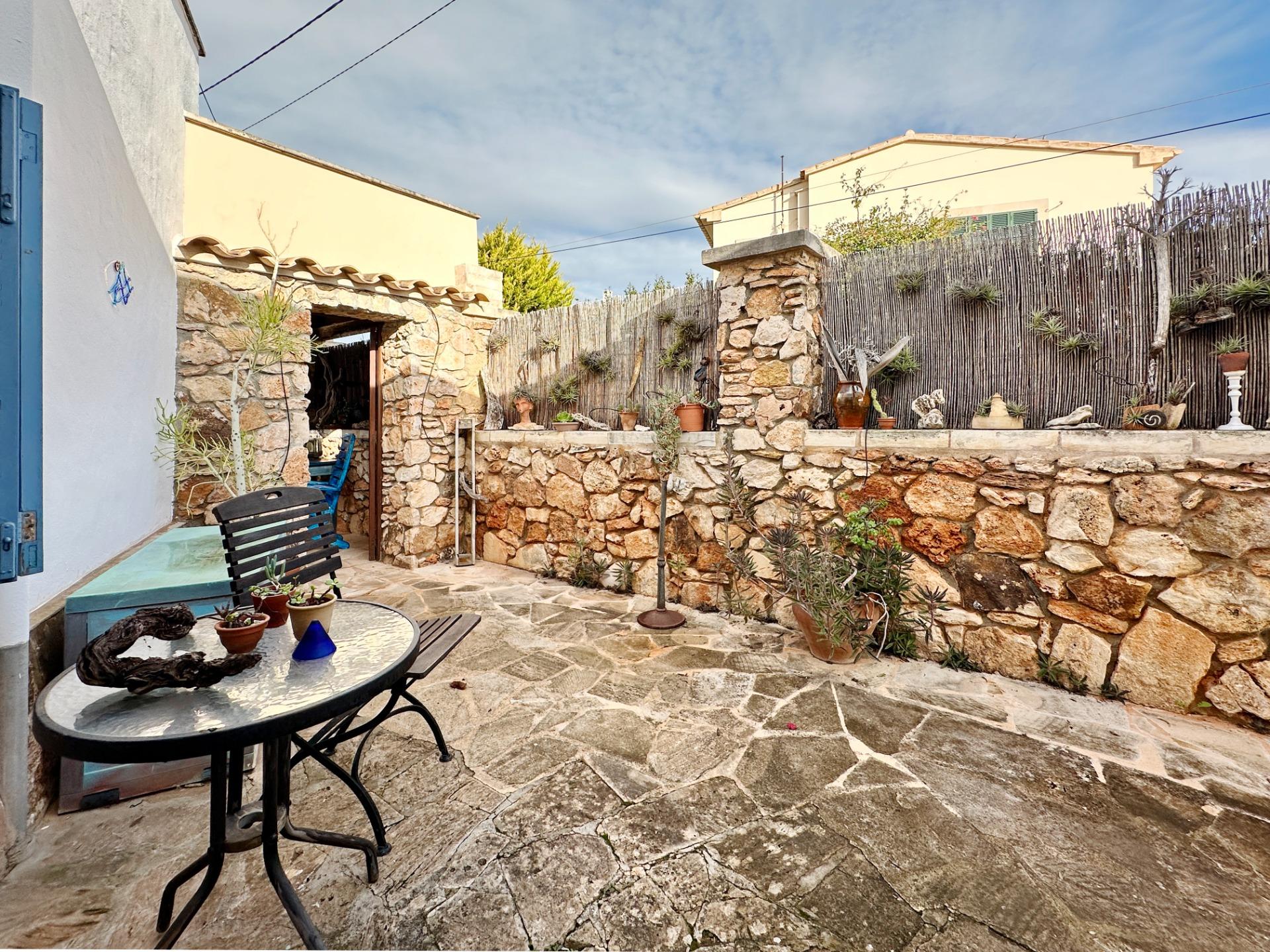 Terrazas: Varias zonas de sombra y sol rodeadas de paredes de piedra natural mallorquina.