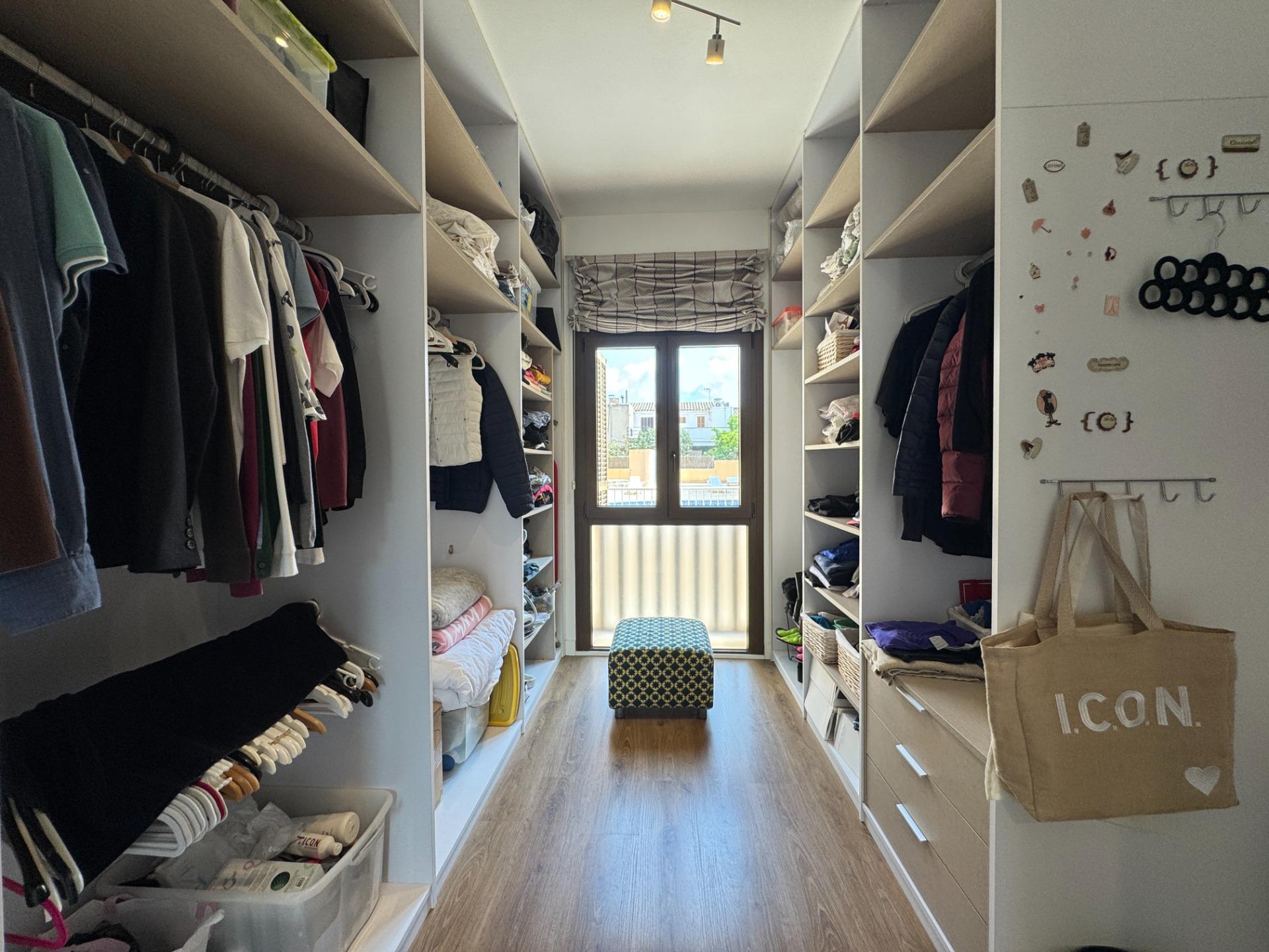 Dormitorios: La vivienda dispone de 3 habitaciones, actualmente distribuidas en un dormitorio principal de buen tamaño, un segundo dormitorio y un gran vestidor con armarios abiertos (originalmente el tercer dormitorio).