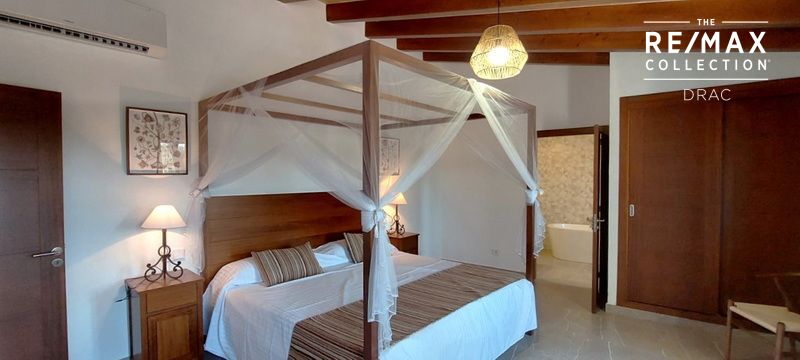 Cuenta con varias salas de estar, cocina totalmente equipada con áreas de comedor y una amplia terraza comedor para disfrutar del atardecer. Todas las habitaciones están equipadas con calefacción y aire acondicionado.La cocina del primer piso tiene acceso al comedor principal y al comedor terraza. La cocina del nivel inferior sirve al gran comedor estilo banquete y al comedor de la piscina. Se puede apreciar la construcción y los materiales de primera calidad de la residencia sin escatimar detalles. El segundo piso contiene la suite presidencial con una cama tamaño king, baño principal con bañera y ducha, así como vestidores y sala de estar. Otras dos suites se encuentran en este piso con áreas separadas con cama tamaño queen y sus propios baños privados completos. El otro dormitorio con salón se encuentra en el piso inferior con acceso directo al área de la piscina.En el exterior de la residencia, la joya de la propiedad es la piscina tipo jacuzzi de 11.00 por 5.50 metros con un área poco profunda para la relajación y disfrute de los más pequeños.